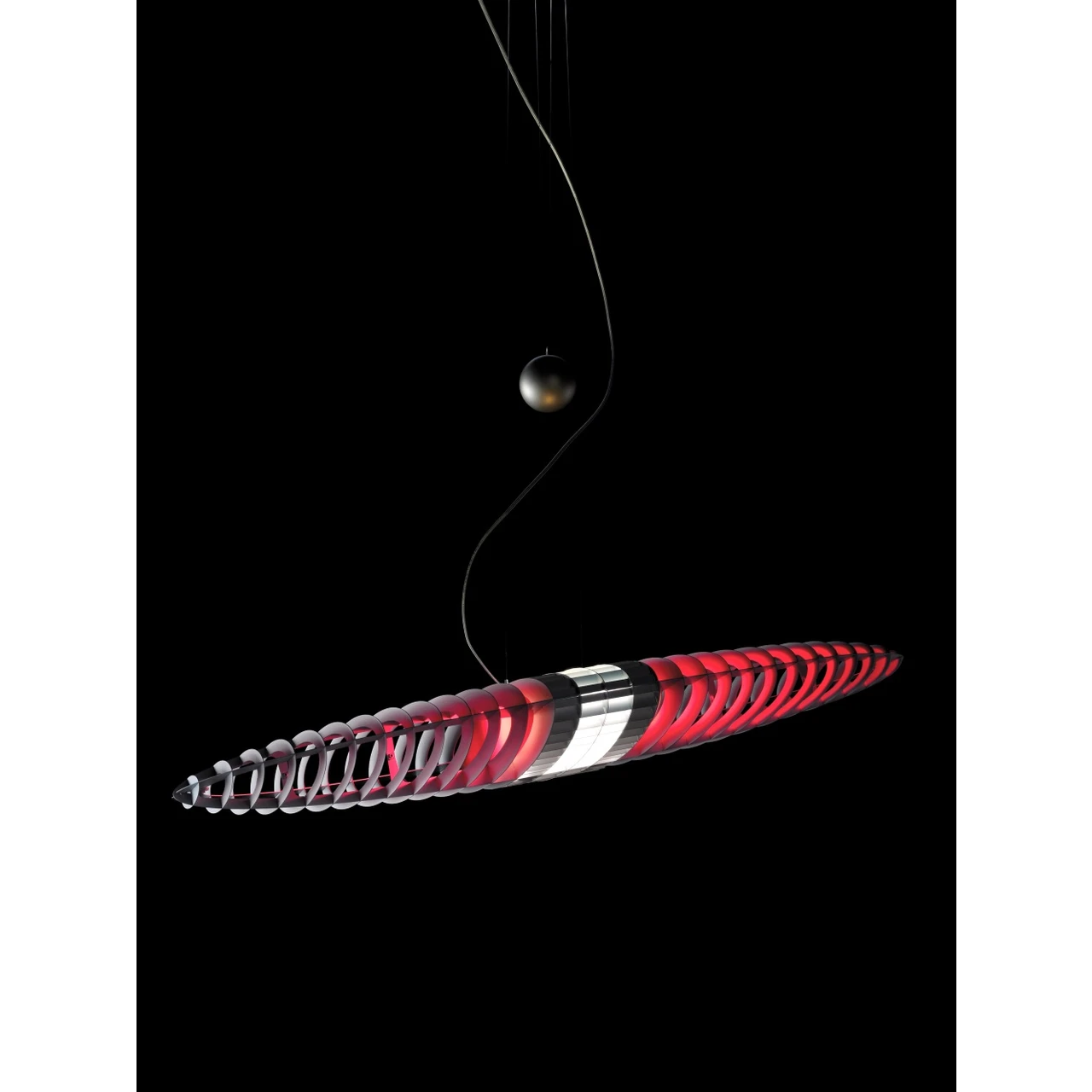 Hanglamp Queen Titania is een unieke verlichting van dubbele grootte met een verhoogd visueel effect, ideaal voor grote ruimtes. Haar elliptische constructie fungeert zowel als kap als reflector voor de centrale lichtbron, waardoor het licht gelijkmatig in de ruimte wordt verspreid zonder verblindingseffect.