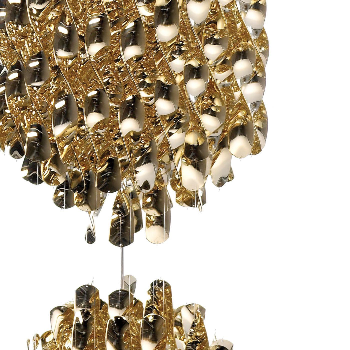 Echter, wat Spiraal onderscheidt, is niet alleen haar vorm, maar ook de manier waarop ze licht weerkaatst. De spiraalelementen weerkaatsen het licht in verschillende richtingen, waardoor de gouden lamp fascinerende patronen op de muren en plafonds eromheen creëert. Deze decoratieve plafondlamp brengt een unieke sfeer in de ruimte, dankzij haar creatieve ontwerp en subtiele spel van licht en schaduw.