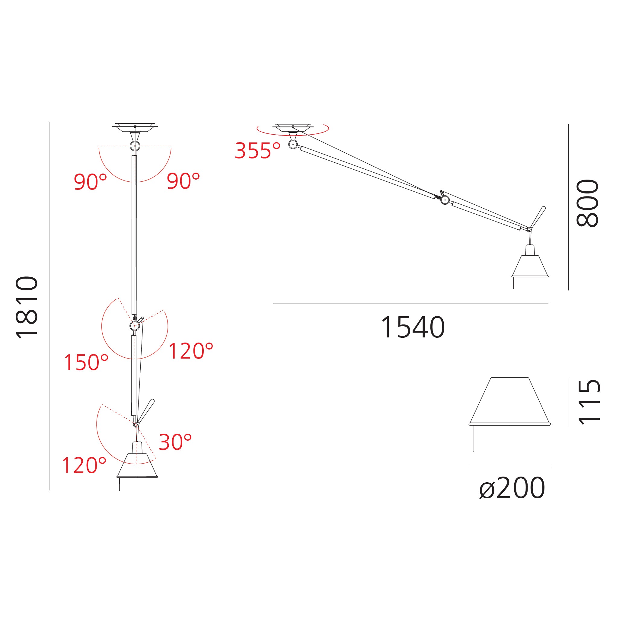 Verstelbare hanglamp TOLOMEO DECENTRATA met pergaminen kap en aluminium arm