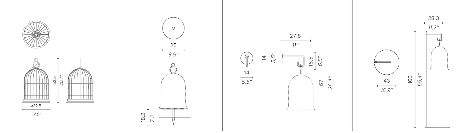 De lamp Freedom heeft de vorm van een metalen kooi en symboliseert vrijheid, dankzij de vogel die aan de buitenkant is geplaatst, in plaats van aan de binnenkant. Het is een buitenlamp met een beschermingsklasse van IP65, beschikbaar in een bedrade versie of op batterijen. De multifunctionele lamp Freedom van Contardi kan worden gebruikt als tafellamp, vloerlamp of wand- en plafondlamp - of als alle drie, afhankelijk van de gekozen accessoires.