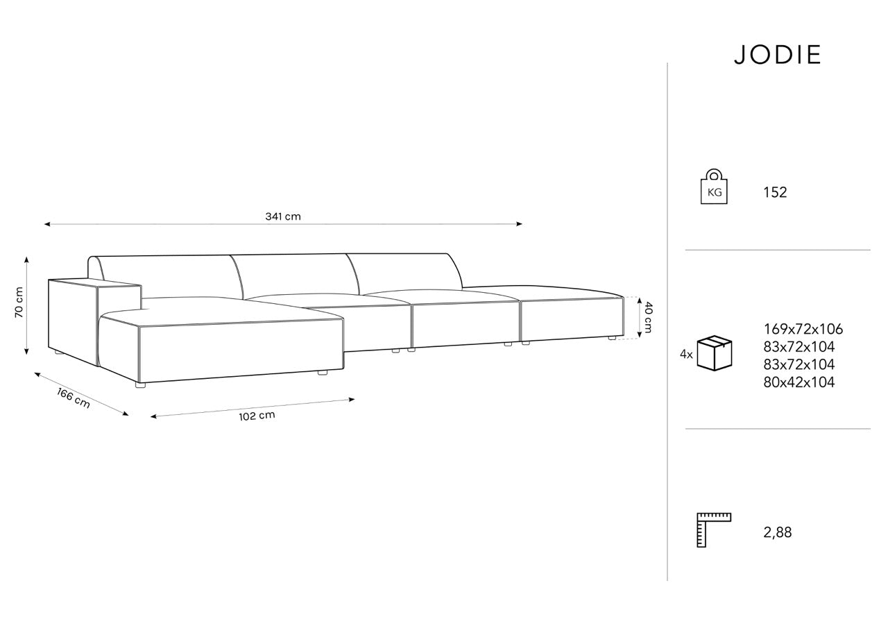Narożnik lewostronny 5-osobowy JODIE jasnoszary Micadoni    Eye on Design