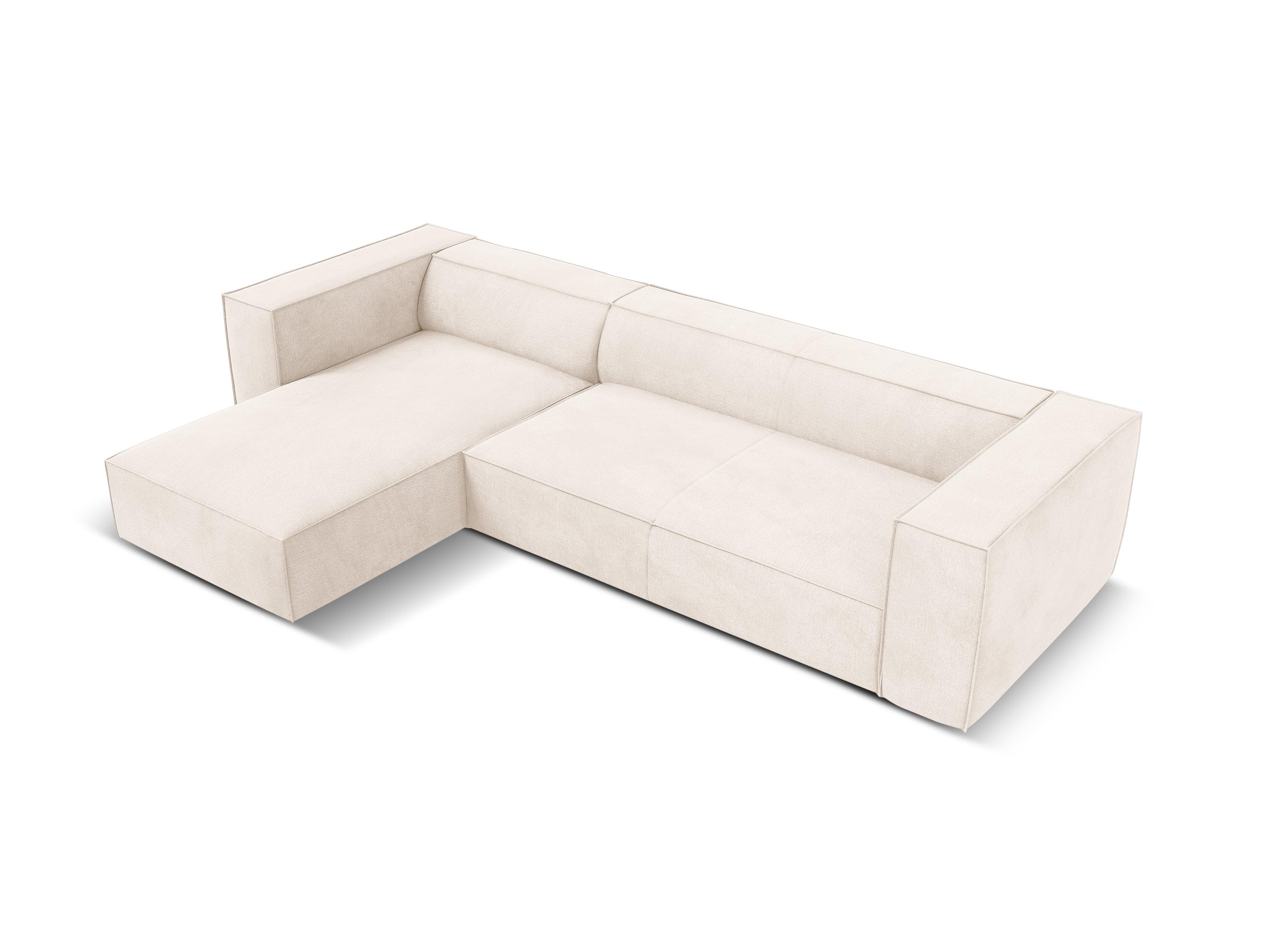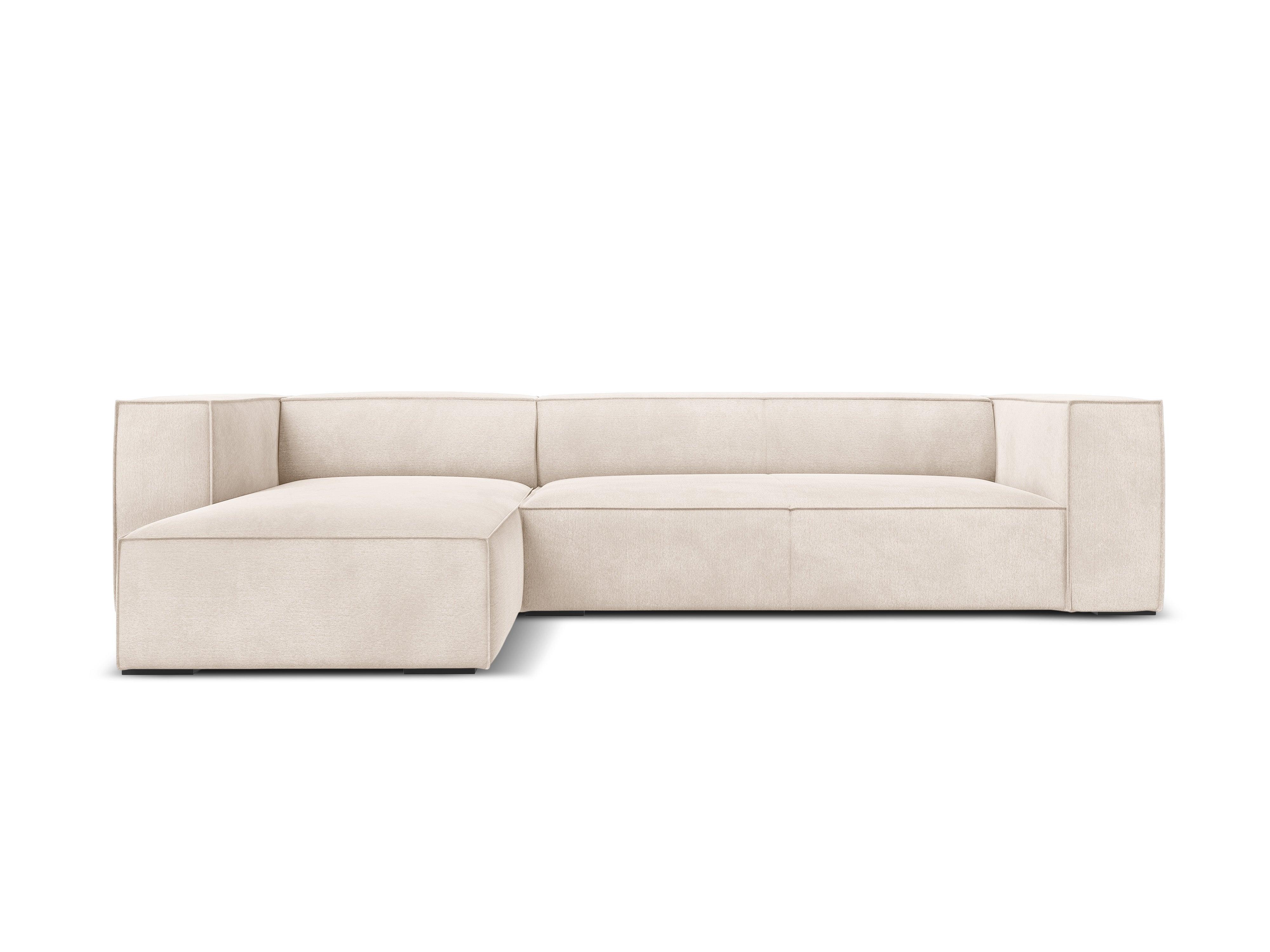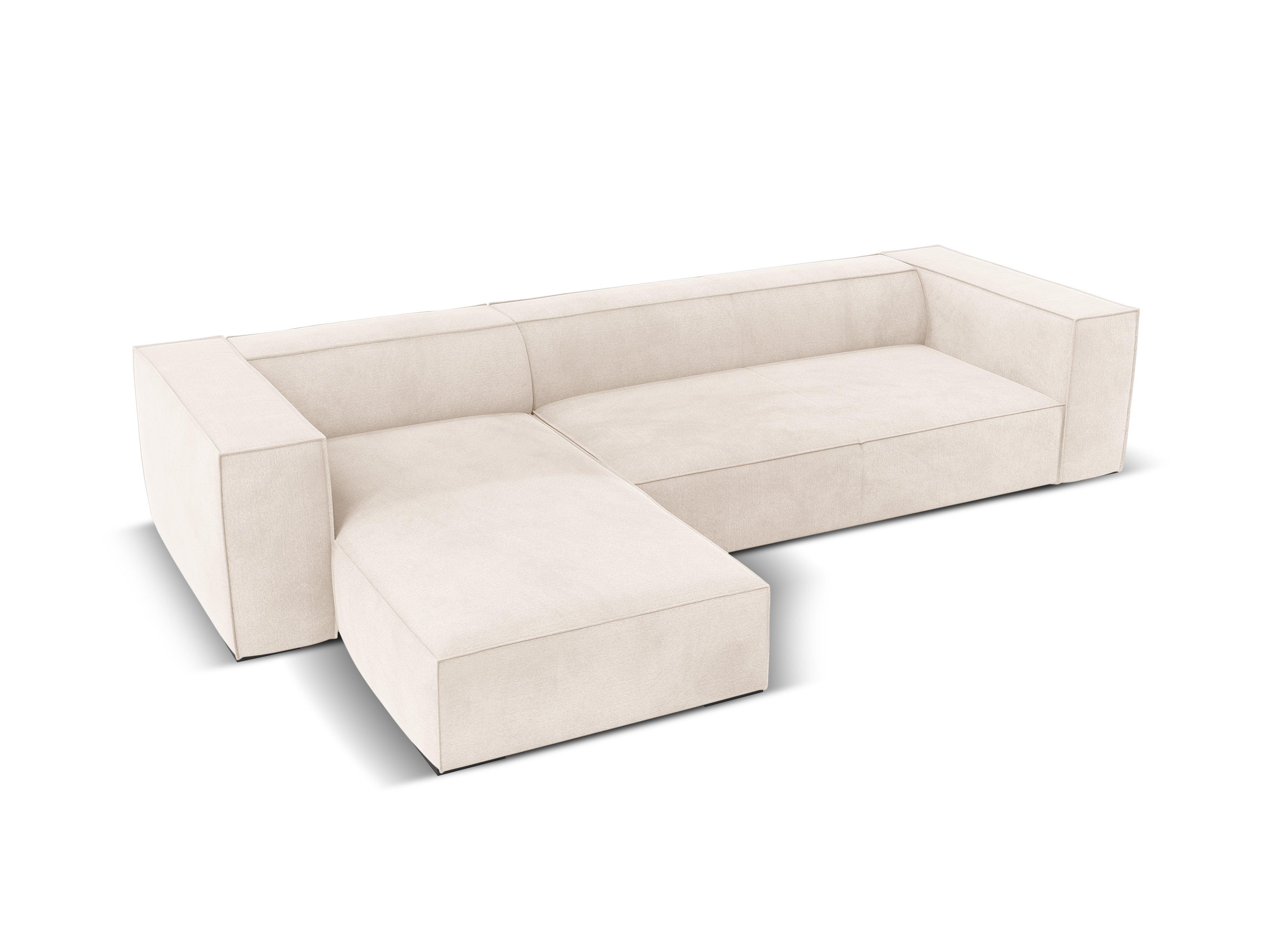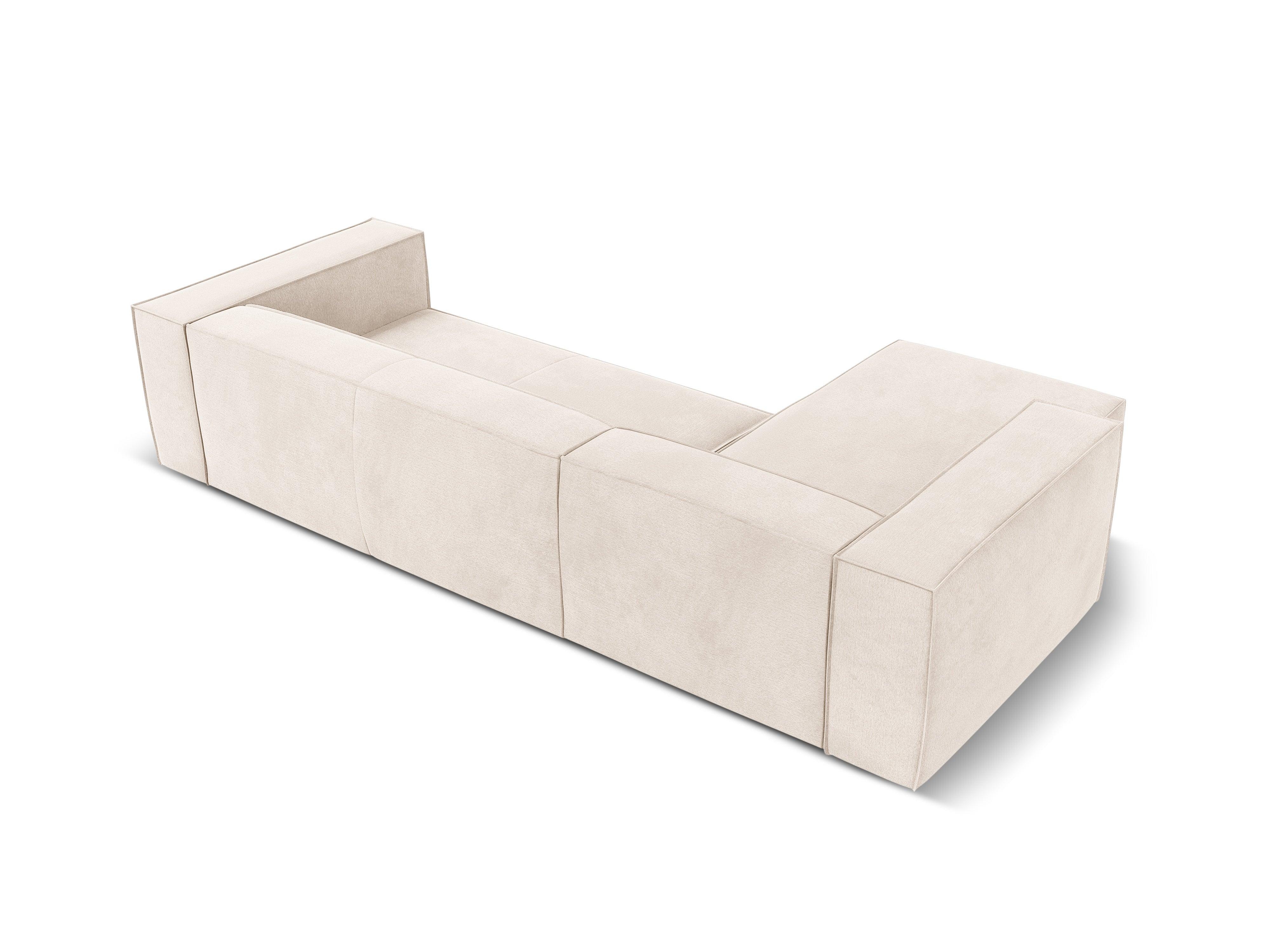 Hoekbank voor vier personen Madame met een uitgesproken karakter en elegante afwerking is de perfecte keuze voor een moderne woonkamer. De diepe zitting is zowel ideaal voor sociale bijeenkomsten als voor momenten van ontspanning na een lange dag. Het biedt de mogelijkheid om comfortabel te ontspannen in verschillende posities. Met een laag profiel, brede armleuningen en rugleuningen vormt het een gezellige vorm.