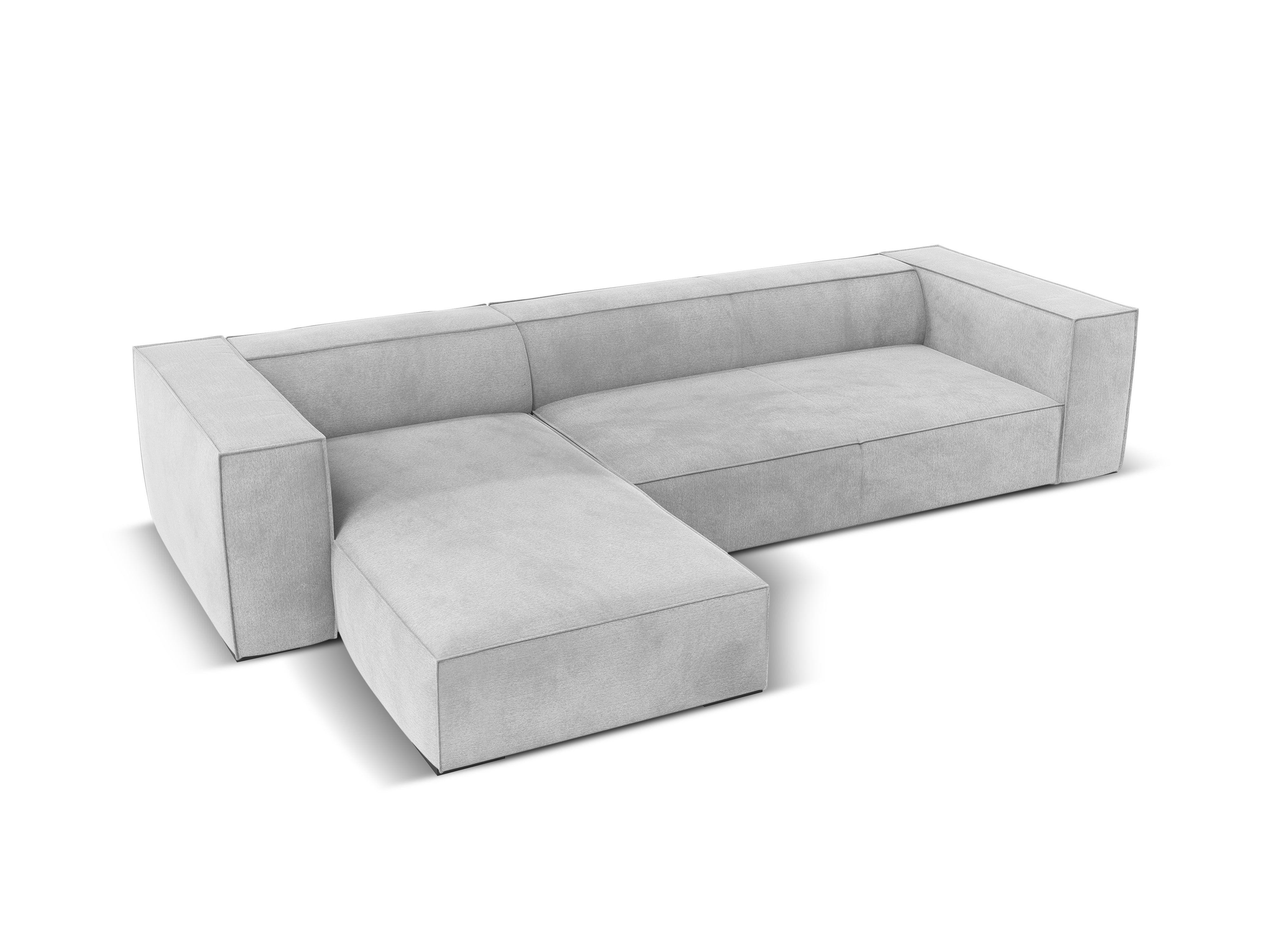 Hoekbank voor vier personen Madame met een uitgesproken karakter en elegante afwerking is de perfecte keuze voor een moderne woonkamer. De diepe zitting is zowel ideaal voor sociale bijeenkomsten als voor momenten van ontspanning na een lange dag. Het biedt de mogelijkheid om comfortabel te ontspannen in verschillende posities. Met een laag profiel, brede armleuningen en rugleuningen vormt het een gezellige vorm.