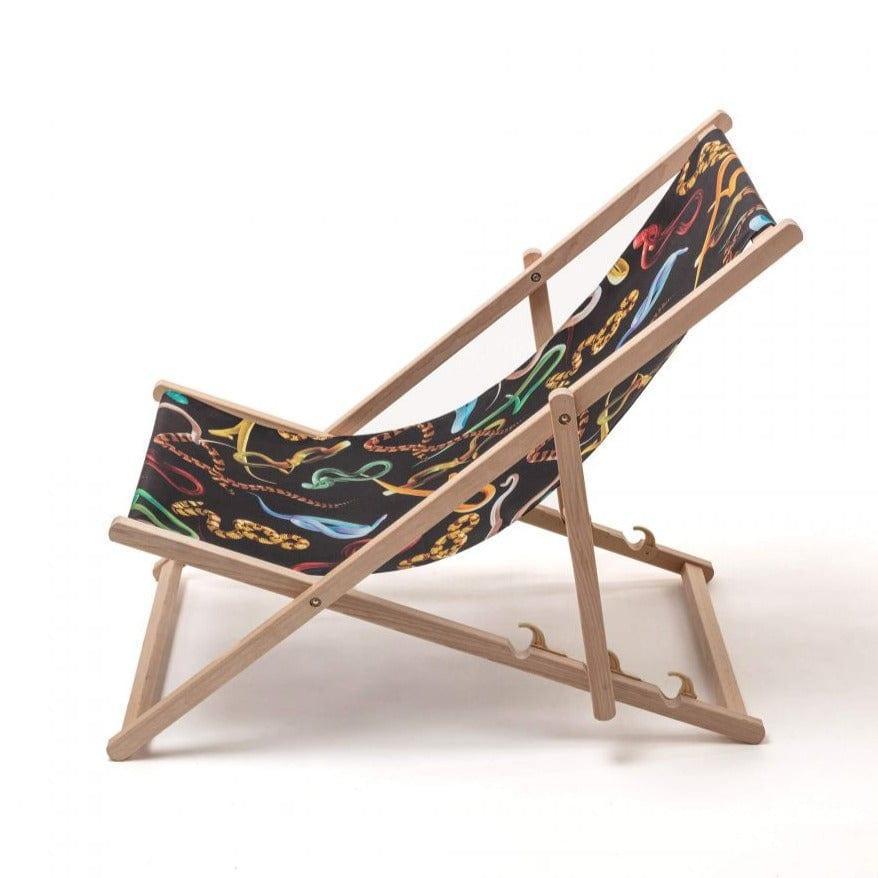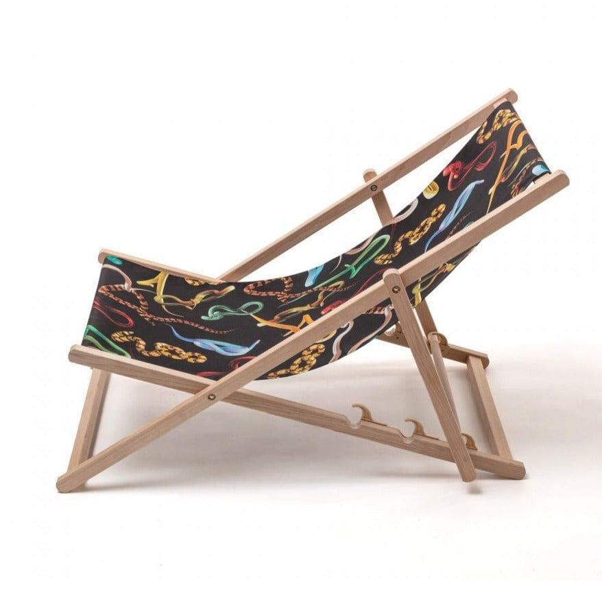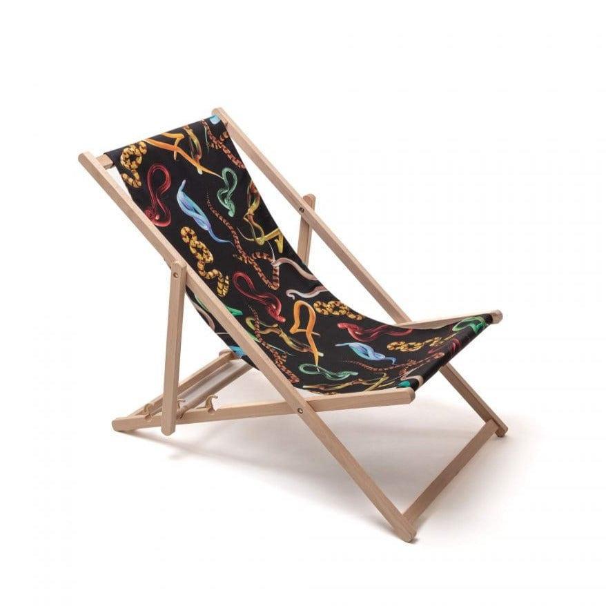 Designer ligstoel Snakes van het Italiaanse merk Seletti is de garantie voor eindeloze vakanties! Ga comfortabel zitten, pak je favoriete tijdschrift en geniet van een drankje, alsof niemand je in de gaten houdt. De ligstoel is gemaakt van hoogwaardig beukenhout en een UV-bestendig materiaal. Hij heeft een drievoudige verstelbaarheid van de rugleuning.