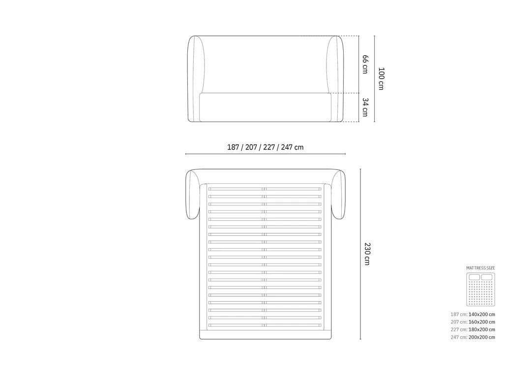Bed Miley is niet alleen indrukwekkend, maar ook praktisch – uitgerust met een ruime opbergruimte voor beddengoed die aan de voorkant kan worden geopend met gasveren. Dit is de ideale keuze voor mensen die de combinatie van esthetiek, functionaliteit en comfort in de slaapkamer waarderen.