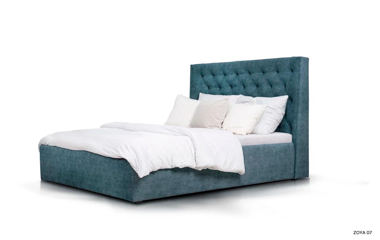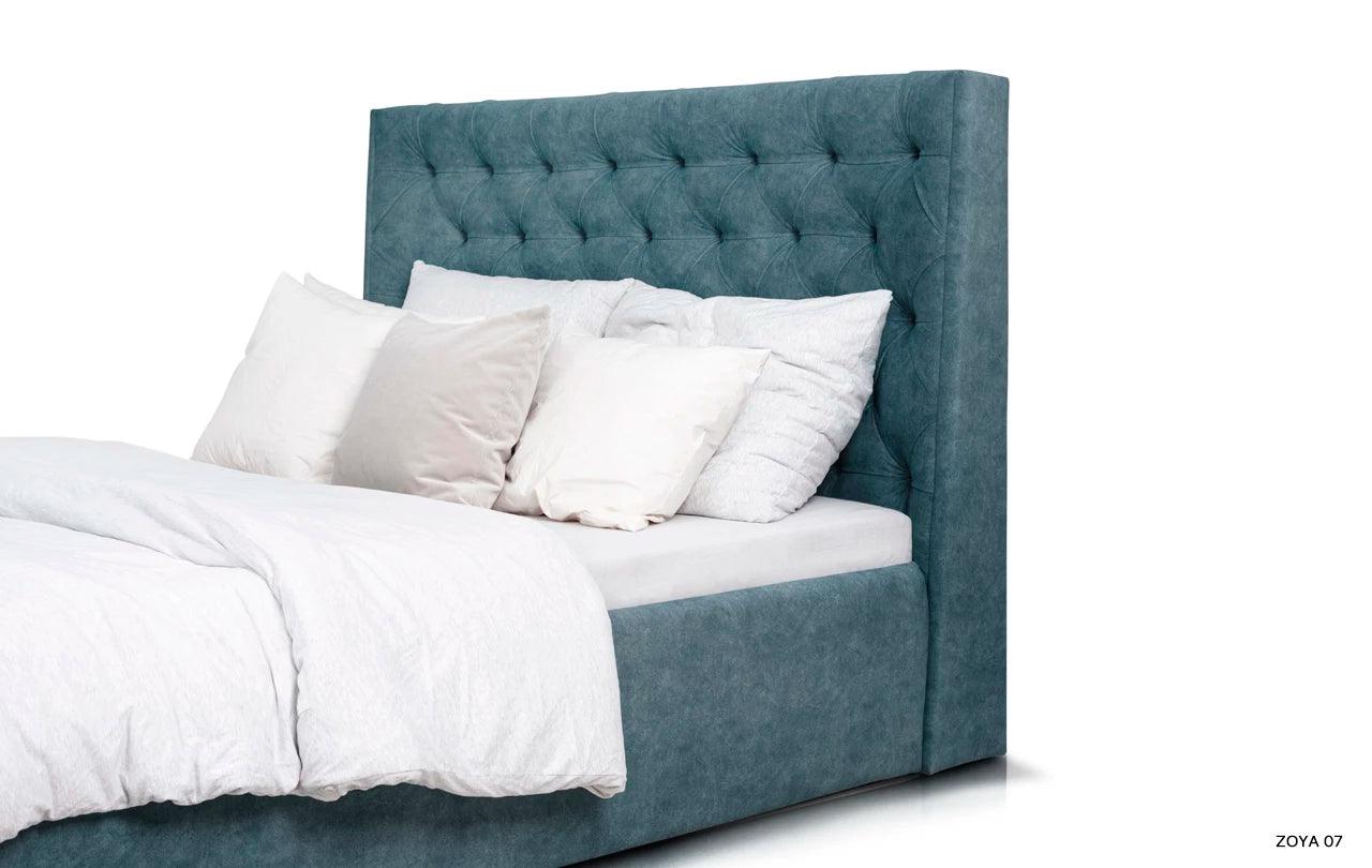In contrast met het decoratieve hoofdeinde, integreert de glad gestoffeerde bedomranding van Neiva harmonieus in de gehele constructie. Dit is niet alleen een esthetische oplossing, maar ook praktisch, dankzij de opbergruimte voor beddengoed, die een efficiënte benutting van de ruimte in de slaapkamer mogelijk maakt.