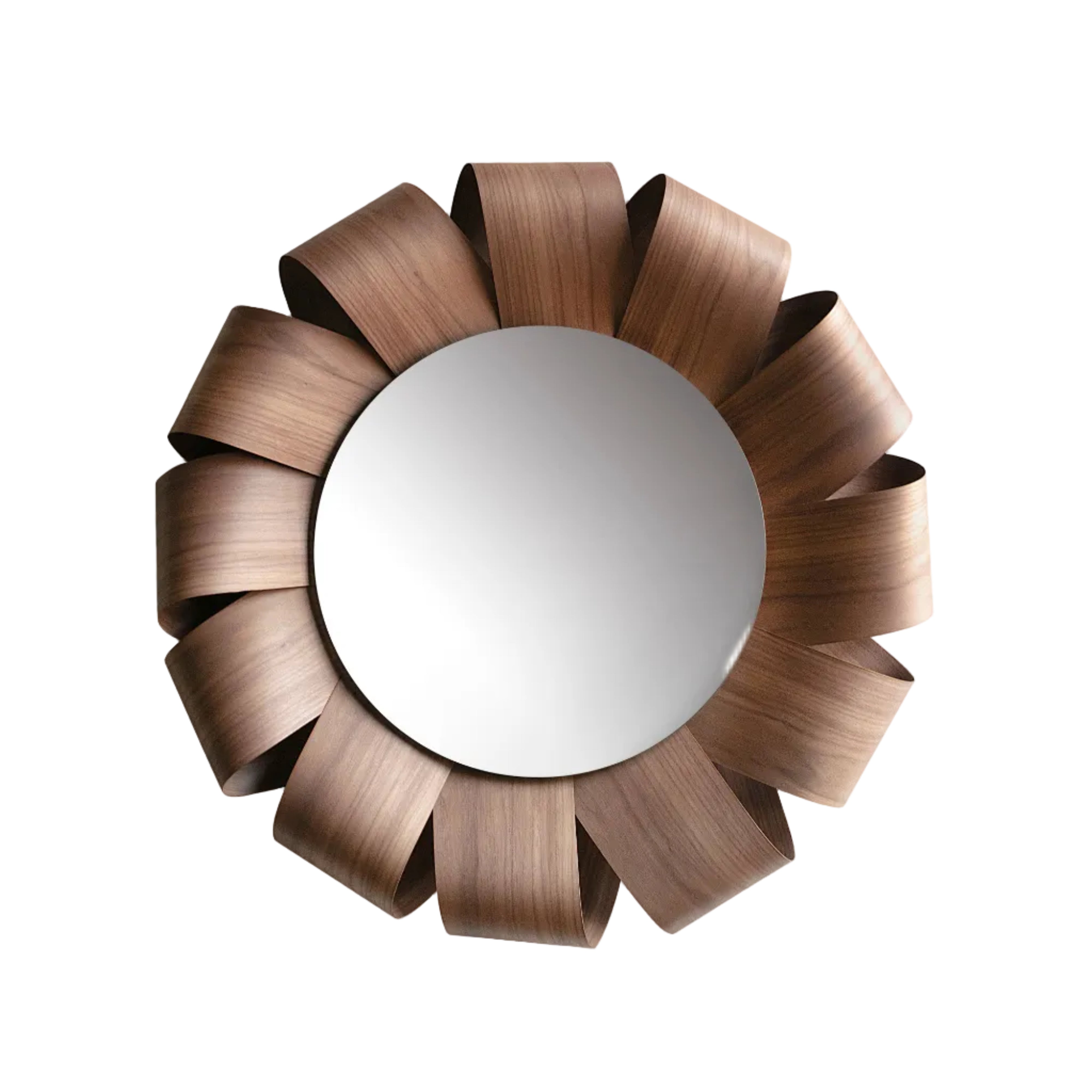 Wandspiegel Brisa is een unieke decoratie geïnspireerd op de natuur, die de aandacht trekt met zijn organische vorm en driedimensionale compositie van natuurlijk notenhout. Zorgvuldig gevormde elementen creëren het effect van subtiele golven, waardoor deze design spiegel het centrale punt wordt in de inrichting van uw woonkamer, slaapkamer of elegante hal.