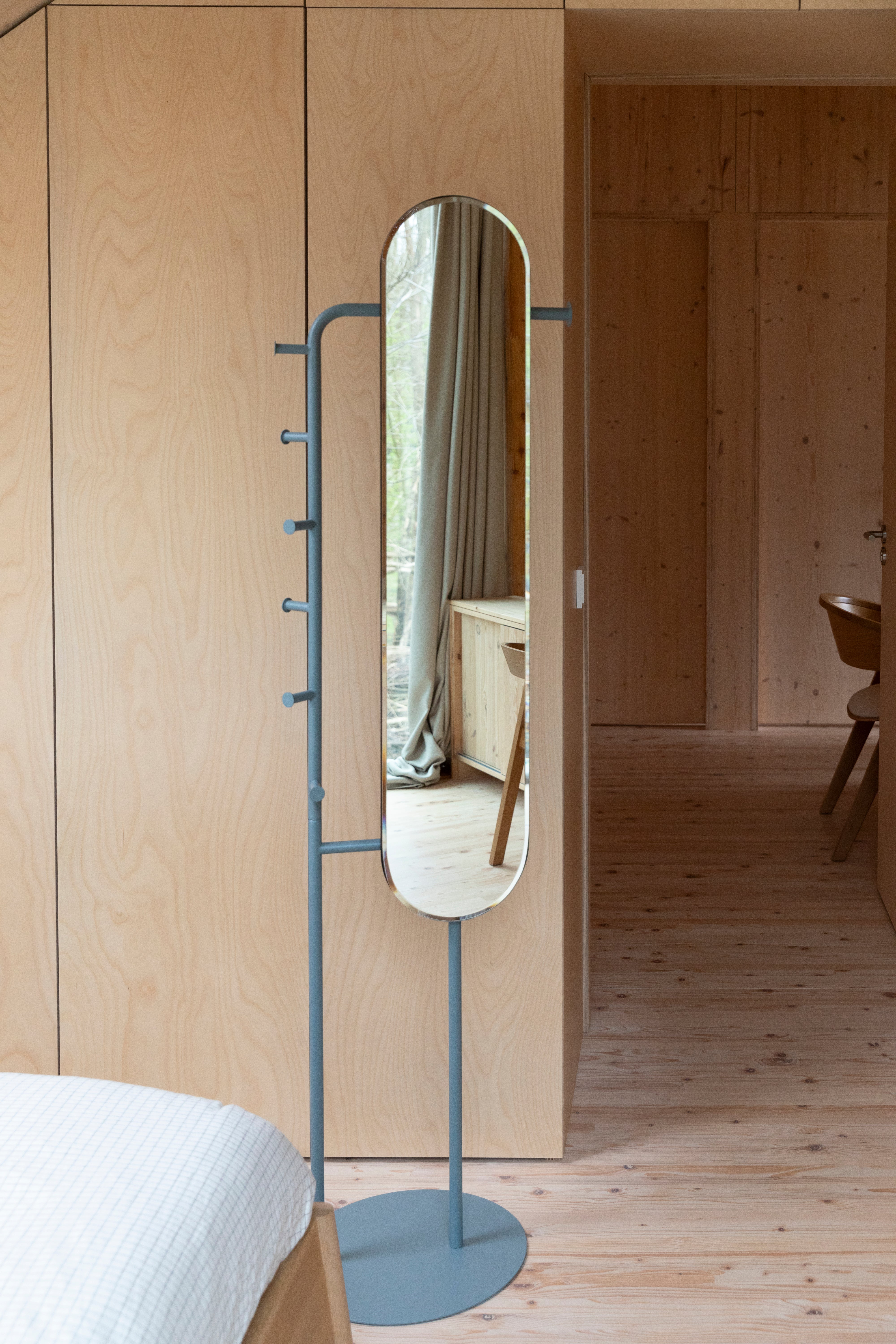 De minimalistische, maar tegelijkertijd originele vorm van de spiegel Vero maakt het ook tot een decoratief element. De blauwe kleur voegt warmte en subtiliteit toe aan het interieur, terwijl de verticale spiegel de ruimte optisch verlengt. Dit is een uitstekende oplossing voor interieurs waar stijl, functionaliteit en ruimtebesparing belangrijk zijn.