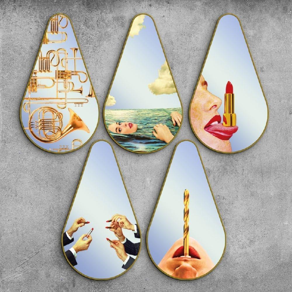Lustro in de vorm van een druppel TRUMPETS in een gouden lijst
