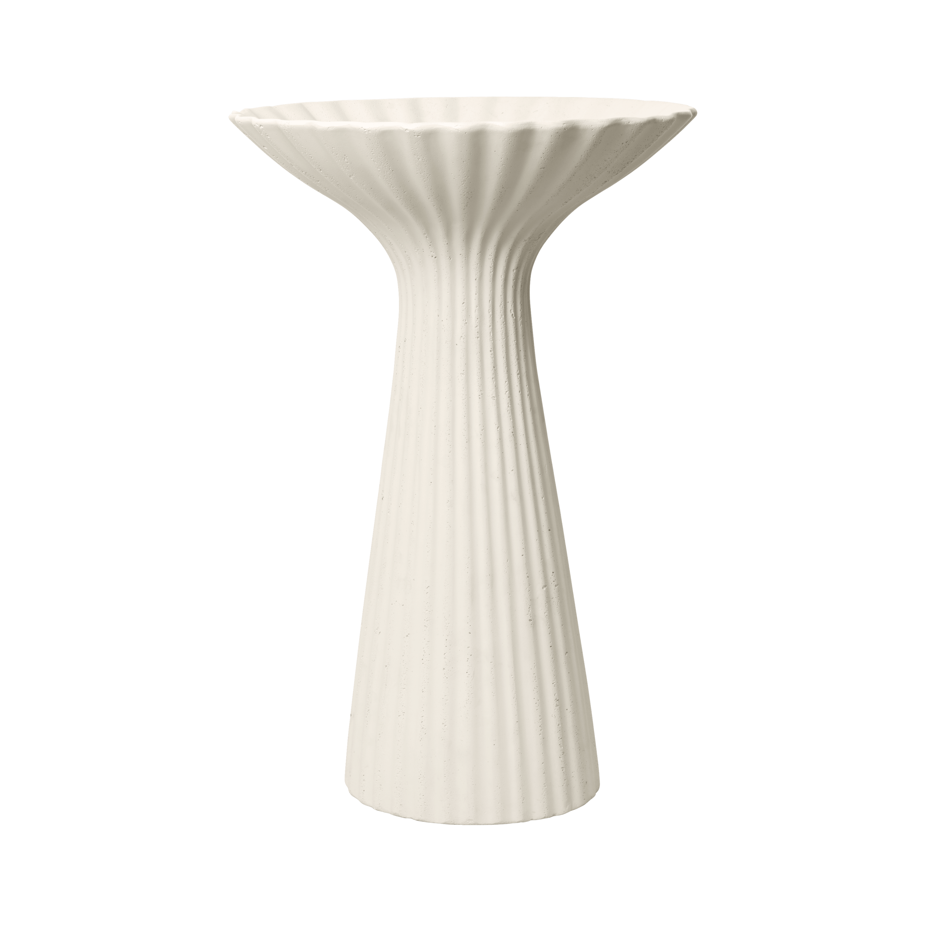 Vogeldrinkbak Fountain is een sculpturale vorm geïnspireerd door de natuur, die decoratieve functie combineert met praktische toepassing. De zachte, gegroefde lijnen verwijzen naar golven van water en organische vormen, wat een gevoel van lichtheid en harmonie creëert. Gemaakt van beton versterkt met glasvezel, de drinkbak valt op door zijn hoge weerstand tegen weersomstandigheden en duurzaamheid. Het kan ook dienen als een opvallend decoratief element in de tuin, op het terras of tussen de planten.