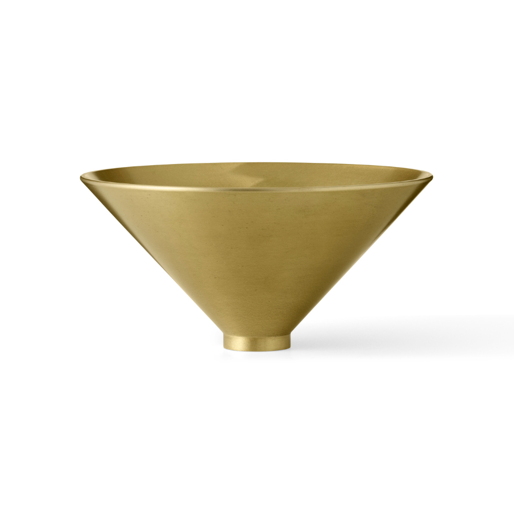 Zaprojektowana przez Colina Kinga dla marki Audo, misa Taper to połączenie klasycznej formy z nowoczesnym wyrafinowaniem. Jej kształt inspirowany jest antycznymi naczyniami, a minimalistyczny, stożkowaty profil wprowadza do wnętrza poczucie równowagi i elegancji. Wykonana z metalu z wykończeniem w kolorze mosiądzu, subtelnie odbija światło, nadając przestrzeni ciepły, szlachetny charakter.