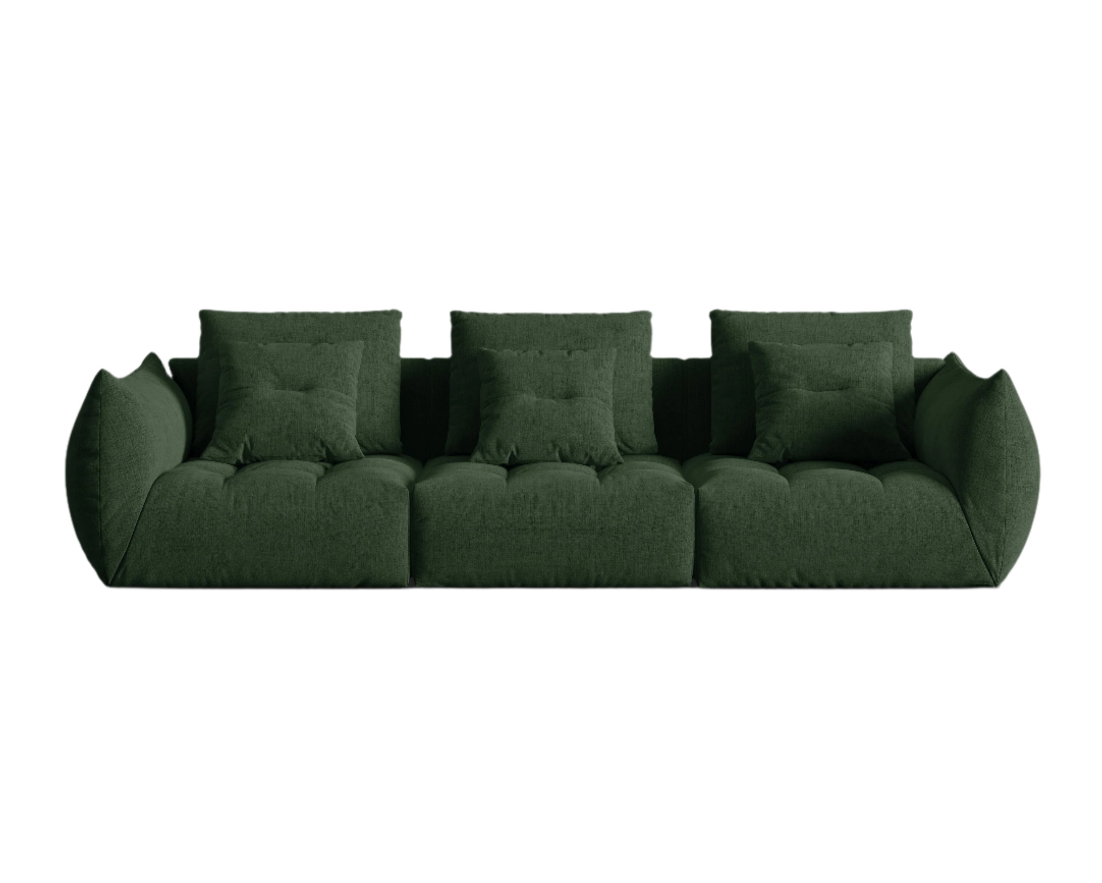 4-zits Sofa Bloom is een voorstel voor degenen die stijl en comfort in de beste vorm waarderen. Al bij de eerste blik betovert het met zijn elegante vorm en zorgvuldig gestikte bekleding, en na een moment – verrast het met uitzonderlijk comfort. Diepe, zachte zitplaatsen, eenuiterst aangename en zachte stof en grote rugkussens en extra kussens maken van ontspannen op de Bloom-sofa een dagelijkse ritueel.
