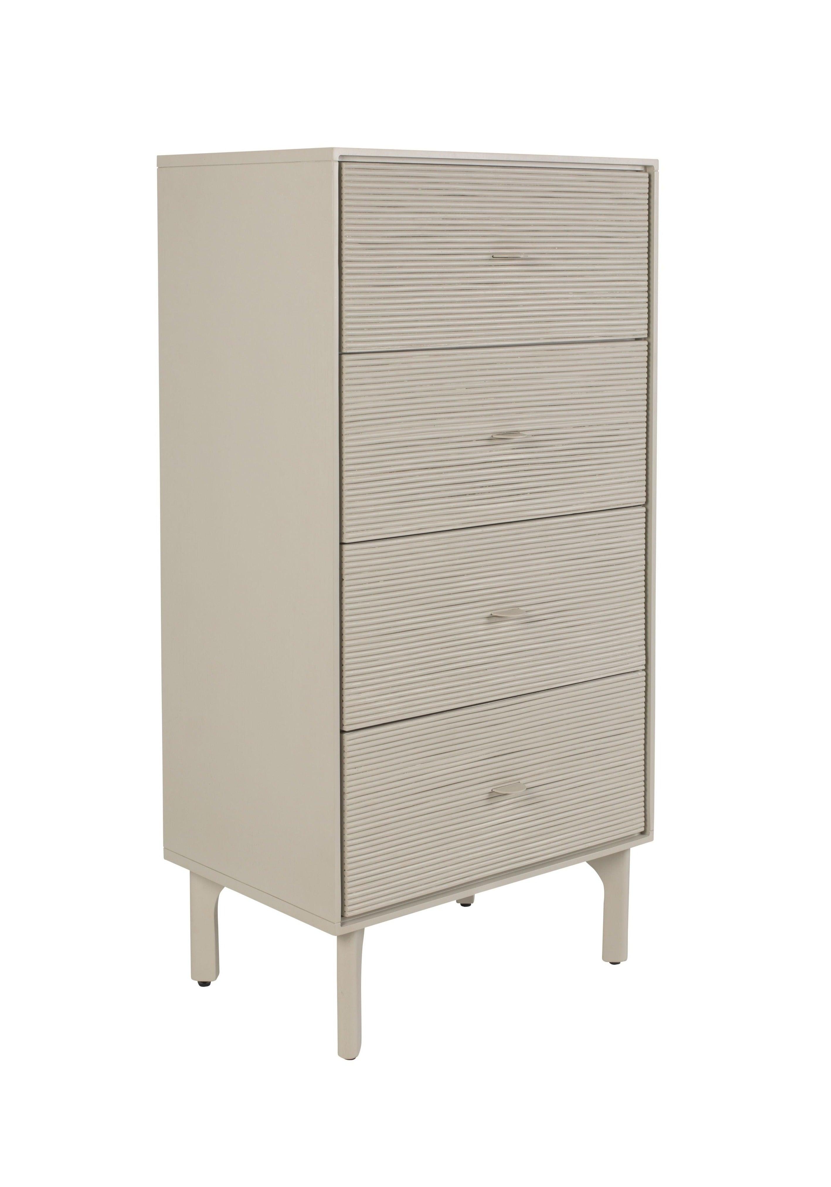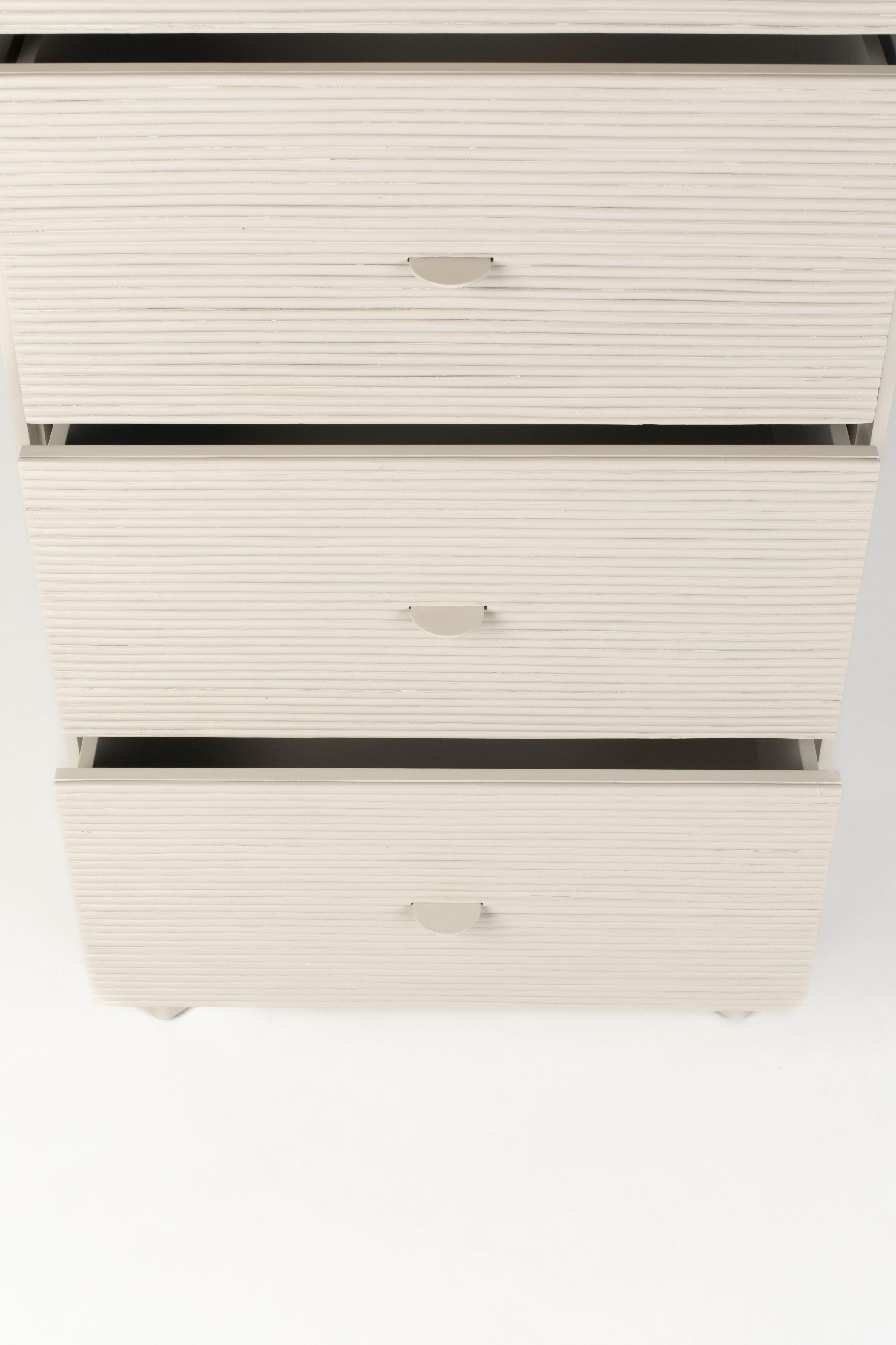 De commode is gemaakt van een natuurlijk houten frame en rotan aan de voorkanten.