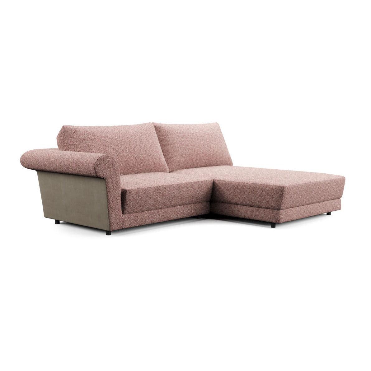 Perzikkleurige hoekbank Dream Away kan ook worden uitgerust met een afneembare hoes, wat het schoonmaken en onderhouden vergemakkelijkt. Deze eigenschap maakt de hoekbank tot een praktische en functionele meubelstuk dat kan worden aangepast aan veranderende behoeften en voorkeuren.