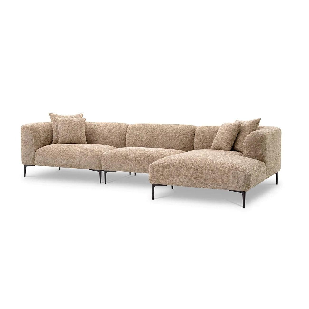 Hoekbank Firenze is een oase van ontspanning voor uw lichaam en een balsem voor uw geest. Zijn unieke, asymmetrische silhouet brengt een tijdloze charme in uw leefruimte, die samenkomt met modern design. Dit is een bijzondere, zandkleurige hoekbank, die zich onderscheidt door zijn stijlvolle armleuningen, die zowel een uniek karakter geven als comfort bieden tijdens momenten van ontspanning. De textuur van de bekleding in een rustige, neutrale tint voegt elegantie en klasse toe aan de hoekbank Firenze, terwijl het harmonieus aansluit bij diverse kleurenschema's in uw interieur.