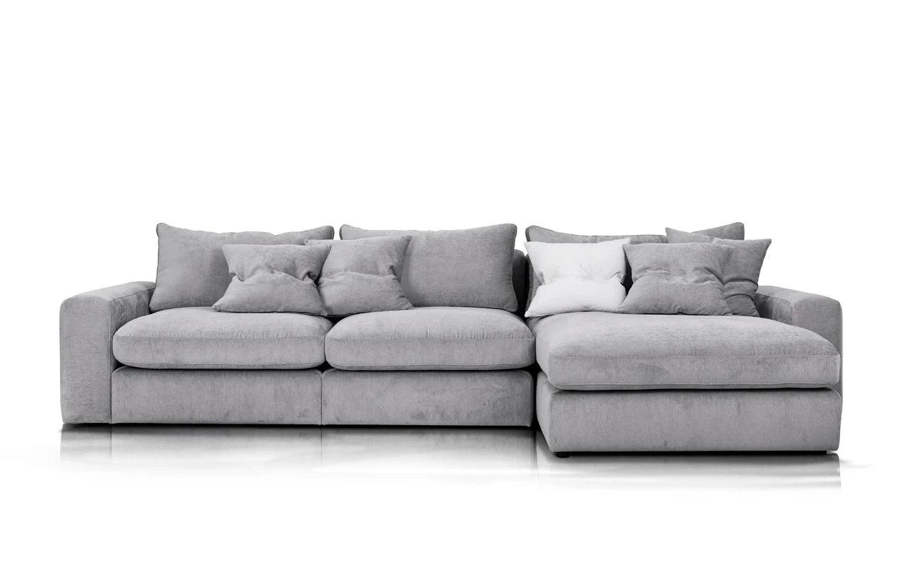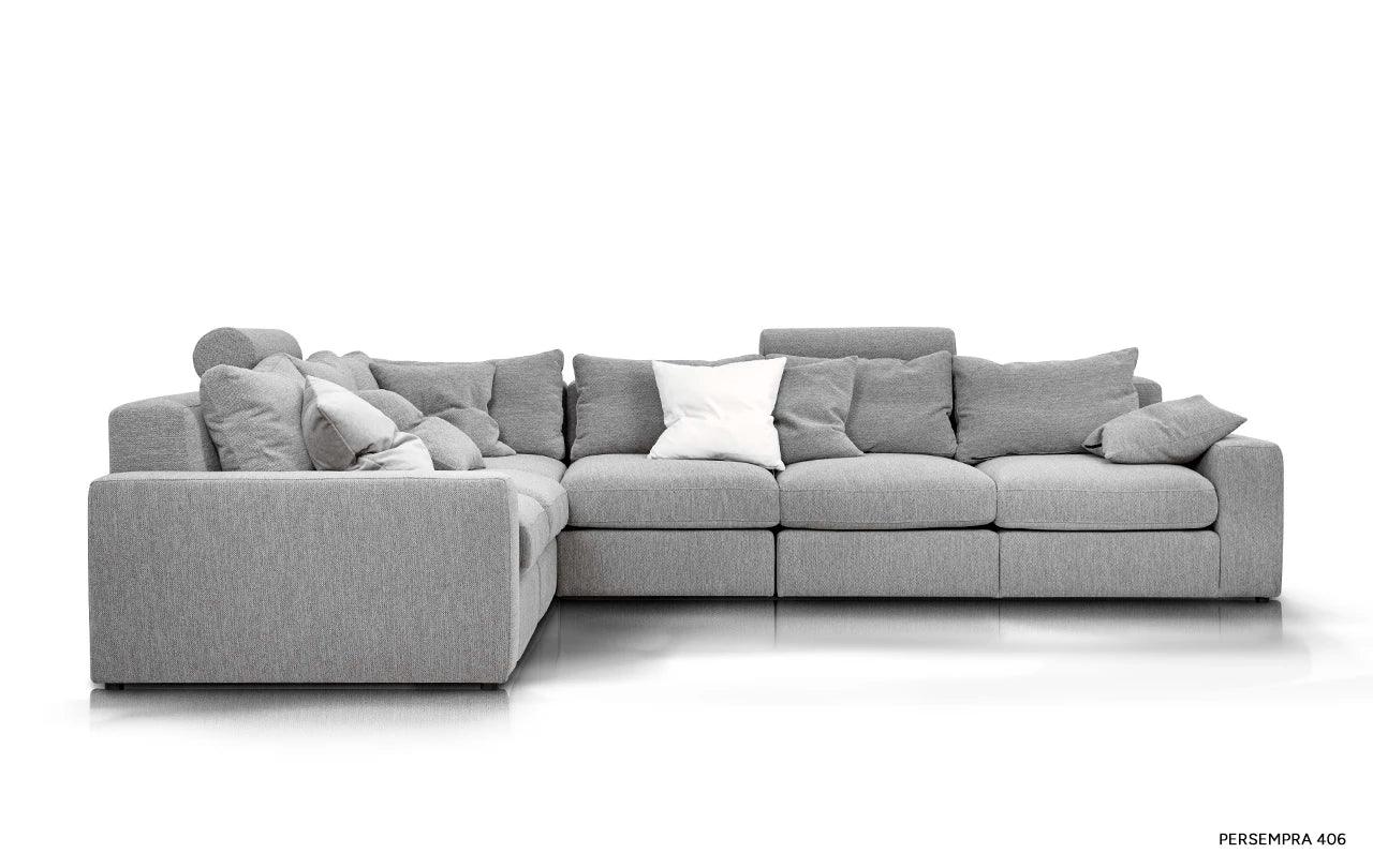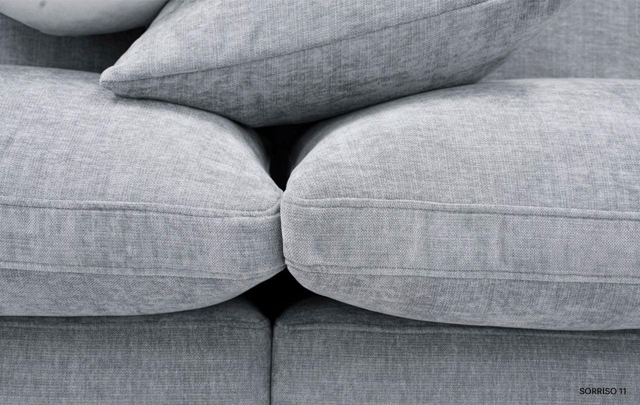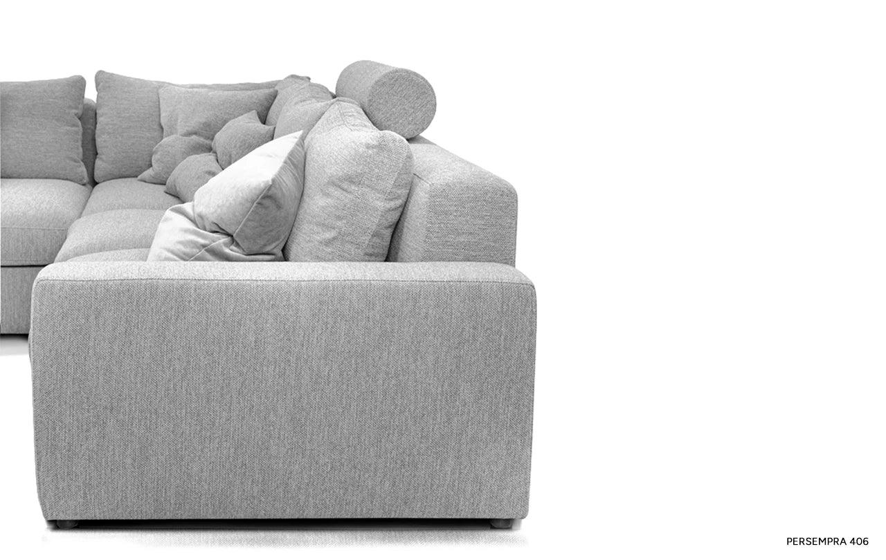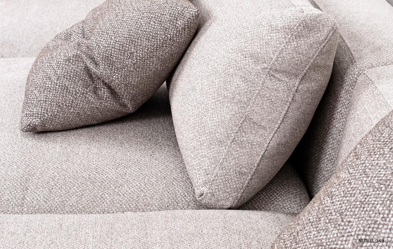 Met zijn eenvoudige vorm en minimalistisch design krijgt de hoekbank Lena een unieke uitstraling door de zachte kussens op de zitting en rugleuning. Deze accessoires doorbreken niet alleen de striktheid van de vorm, maar geven het meubel ook een gevoel van lichtheid en gezelligheid. De kussens, gevuld met hoogelastisch polyurethaanschuim en natuurlijk dons, zorgen niet alleen voor een esthetisch uiterlijk, maar verhogen ook het gebruiksgemak van de hoekbank.