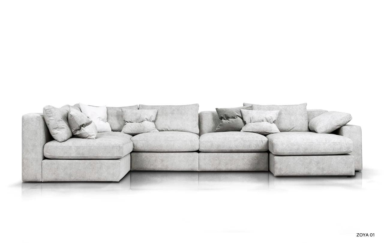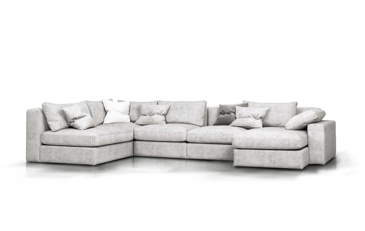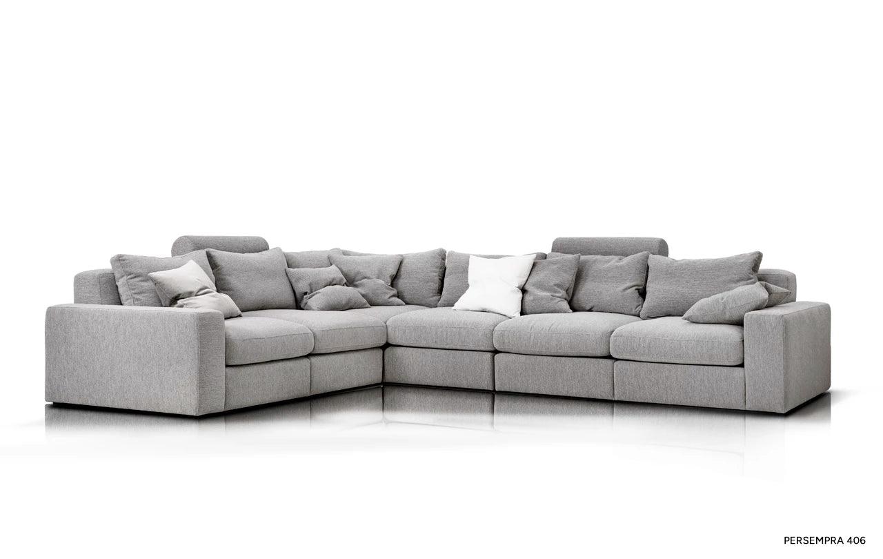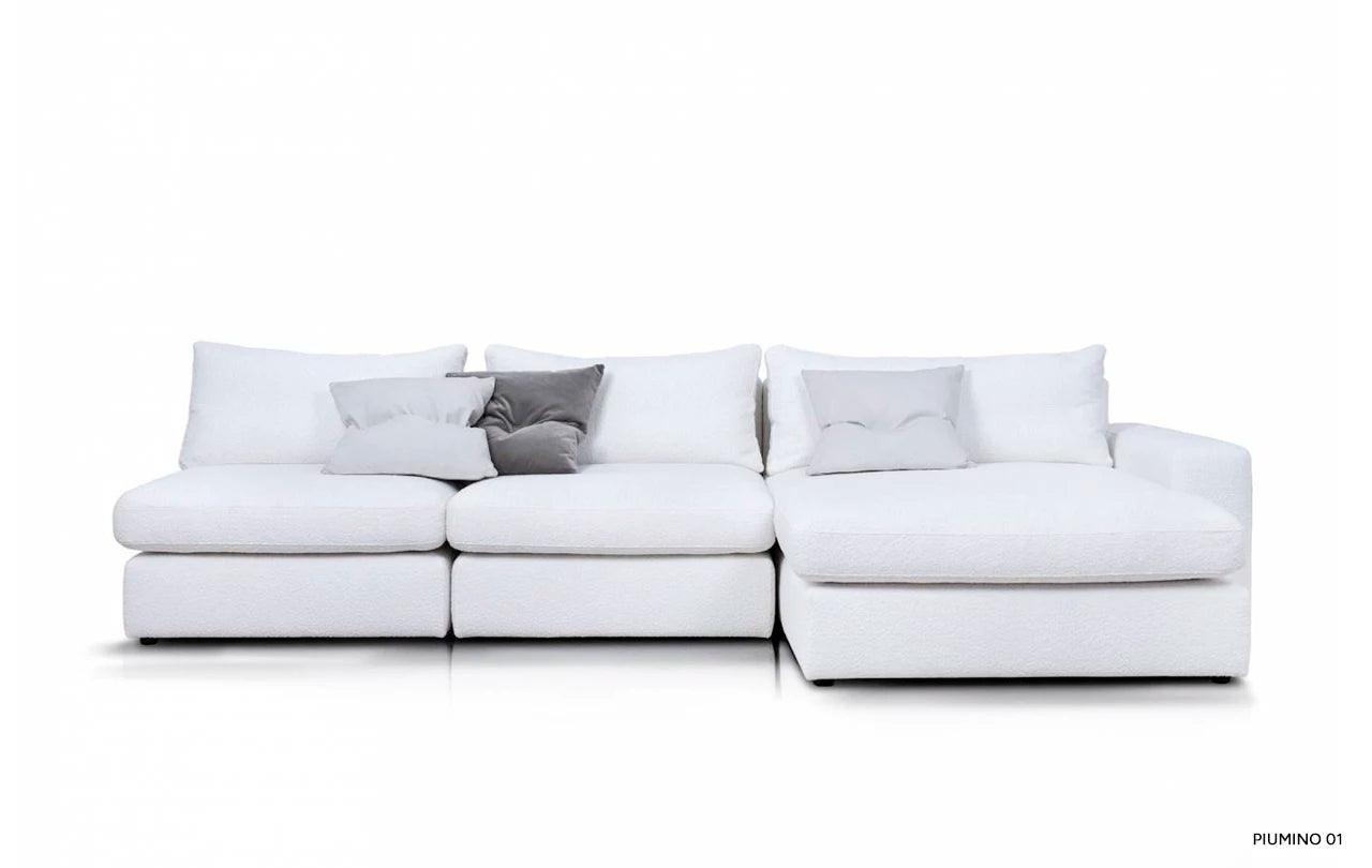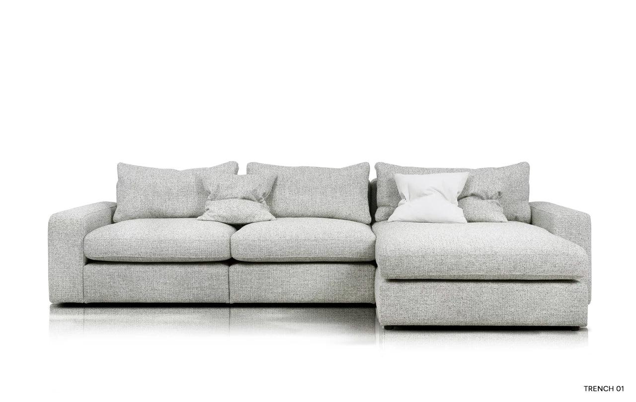 Met zijn eenvoudige vorm en minimalistisch design krijgt de hoekbank Lena een unieke uitstraling door de zachte kussens op de zitting en rugleuning. Deze accessoires doorbreken niet alleen de striktheid van de vorm, maar geven het meubel ook een gevoel van lichtheid en gezelligheid. De kussens, gevuld met hoogelastisch polyurethaanschuim en natuurlijk dons, zorgen niet alleen voor een esthetisch uiterlijk, maar verhogen ook het gebruiksgemak van de hoekbank.