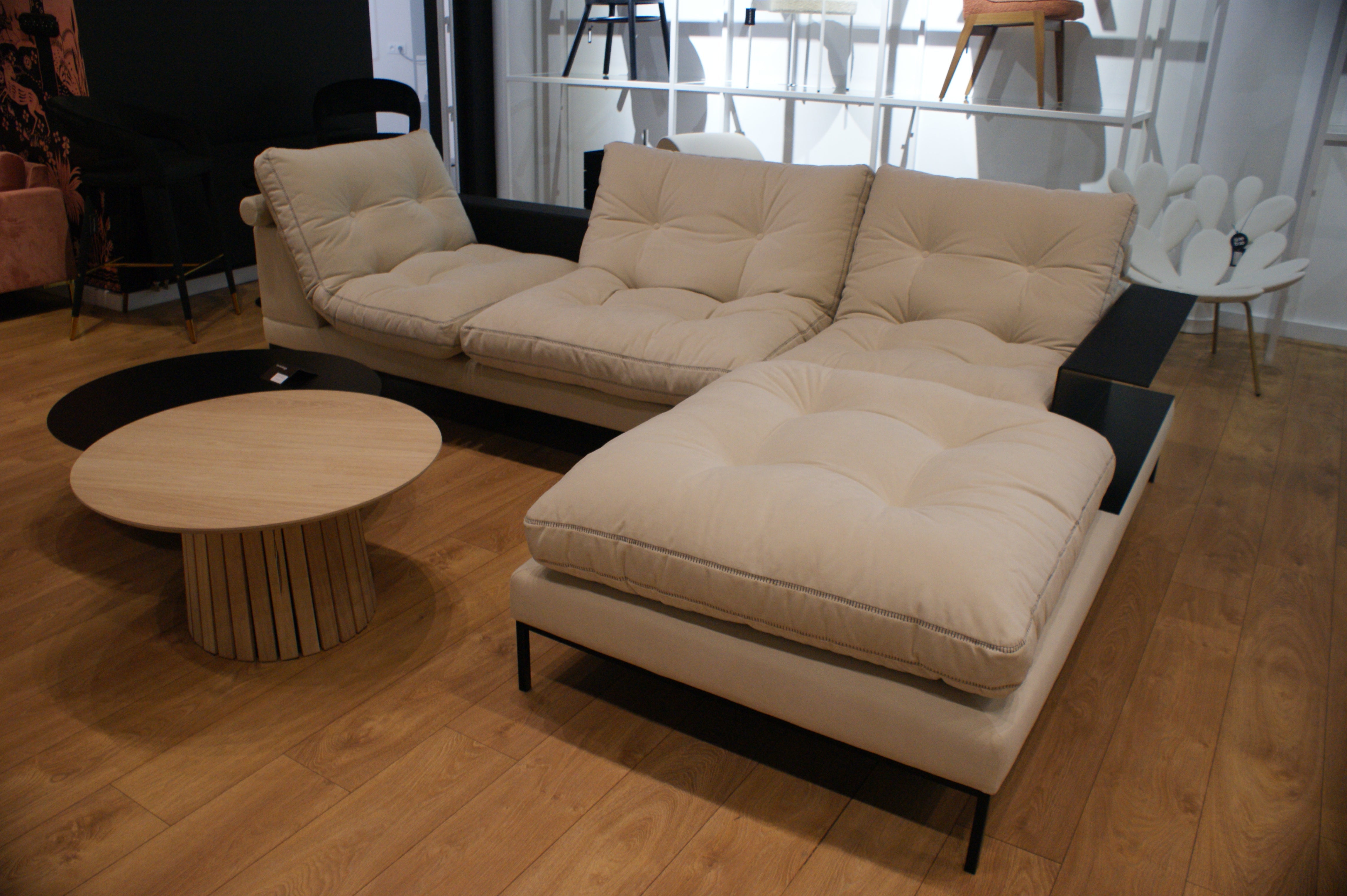 Narożnik Study to połączenie designerskiej formy i funkcjonalności, które wyróżniają się spośród innych narożników. Projektant Arik Ben Simhon stworzył dwa modele narożników: prawostronny i lewostronny, które osadzone są na wysokich, metalowych, czarnych nóżkach. Nadają one lekkości całej konstrukcji i ułatwiają sprzątanie pod meblem.