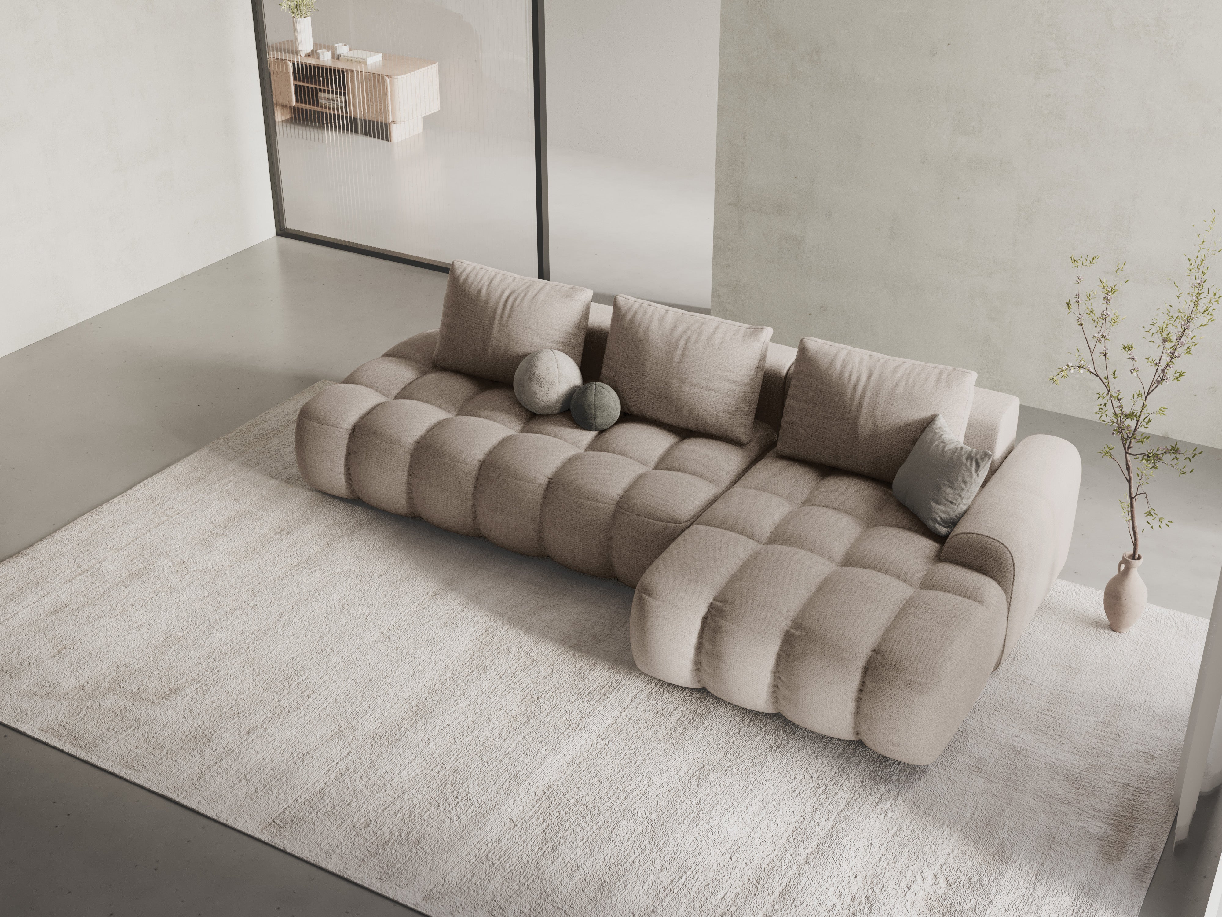 Een extra voordeel van de hoekbank Linz is de mogelijkheid om hem uit te klappen tot een slaapfunctie, wat het een praktische oplossing maakt voor gasten. Zijn moderne vorm en zorgvuldig ontworpen details zorgen ervoor dat het niet alleen een comfortabele plek om te ontspannen is, maar ook een opvallende decoratie voor uw interieur.