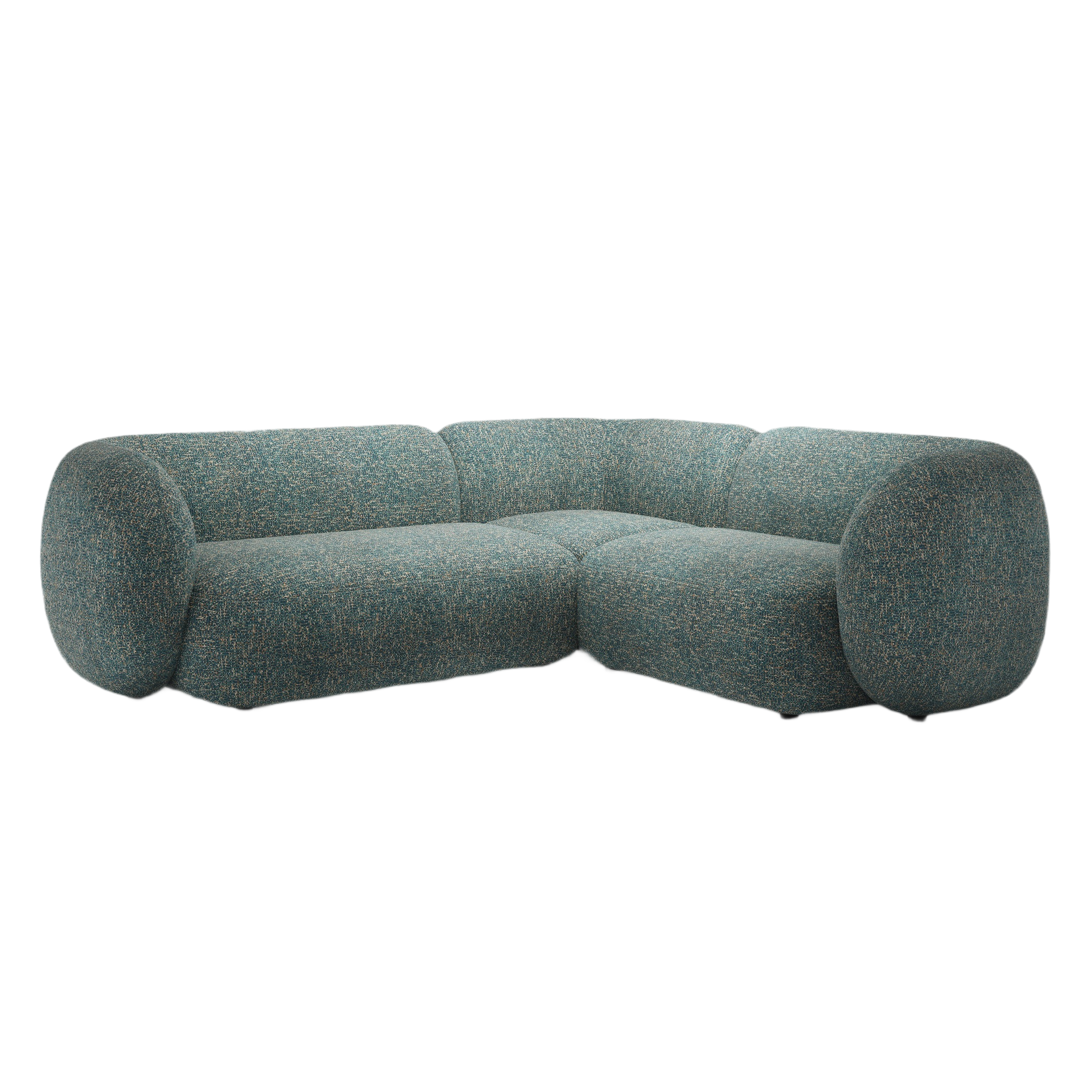 Hoekbank Kate is een combinatie van elegant design en dagelijks comfort. Zijn ronde vorm, geïnspireerd op de mid-century stijl, geeft de ruimte een unieke uitstraling en lichtheid, terwijl de zachte bekleding het de ideale plek maakt om te ontspannen en samen te komen met dierbaren. De L-vormige indeling verhoogt de functionaliteit van de hoekbank, en biedt extra zitruimte of een plek om te relaxen.