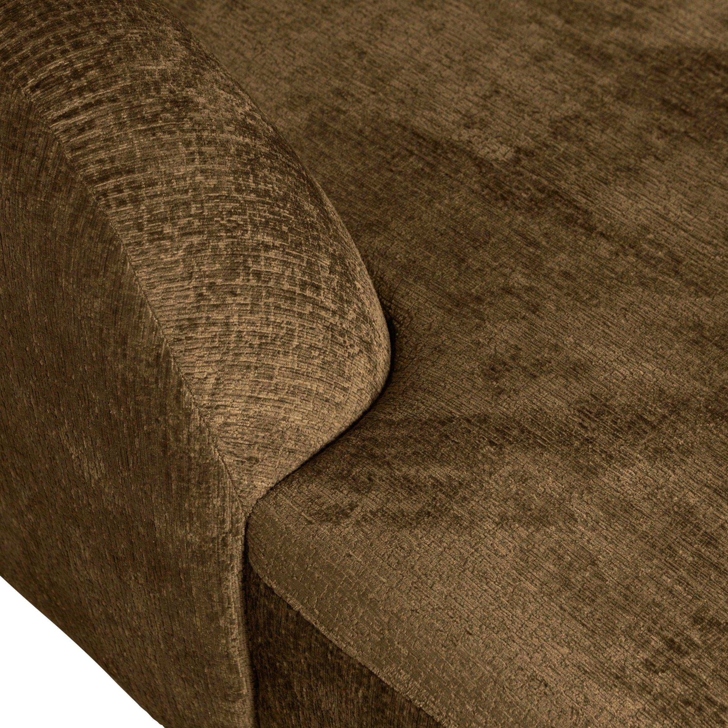 Rechthoekige bank met rechtszijdige armleuning van fluweel SLOPING bruin