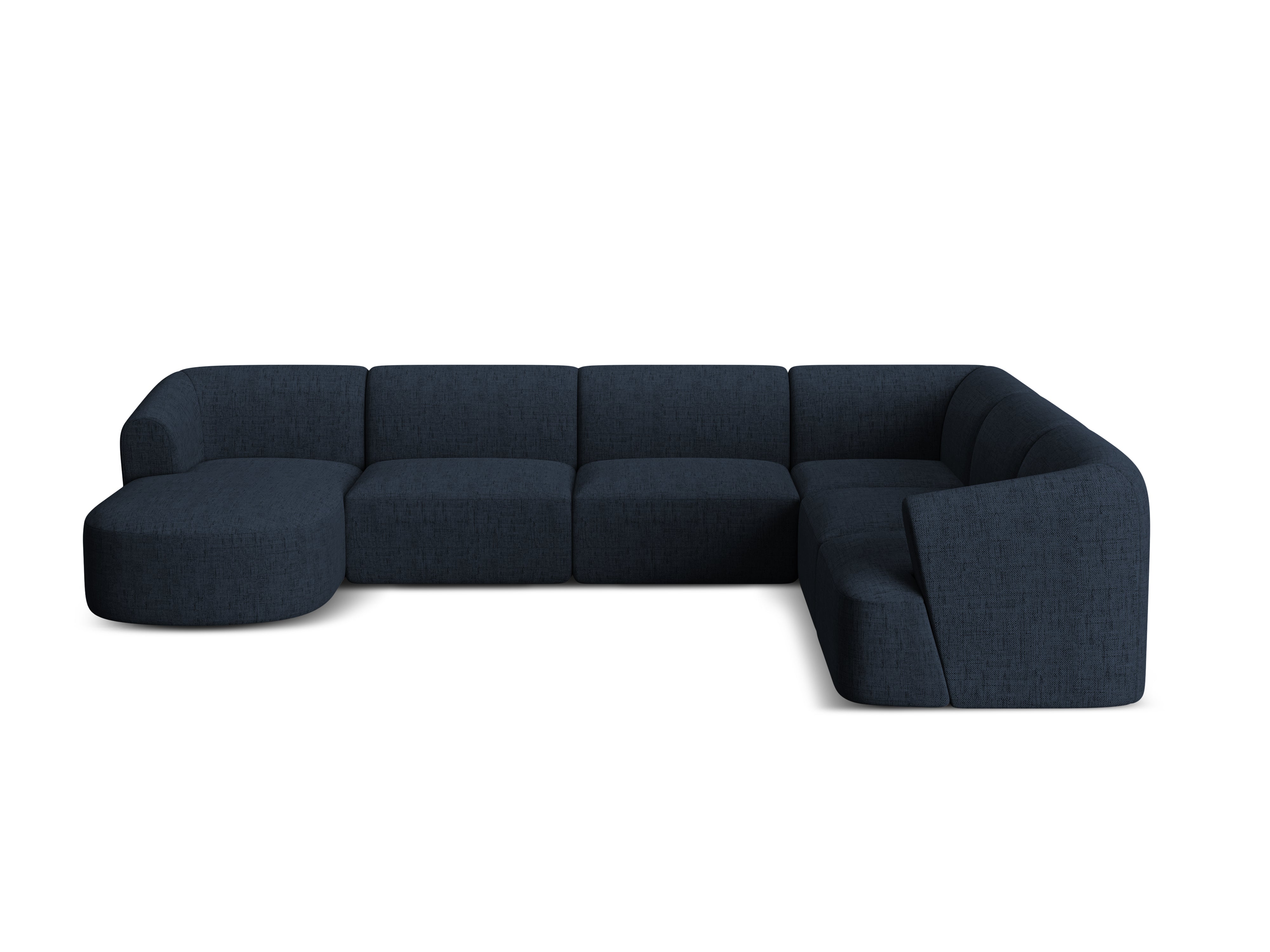 Rechthoekige panoramische 7-persoons hoekbank CAMPI blauwe chenille