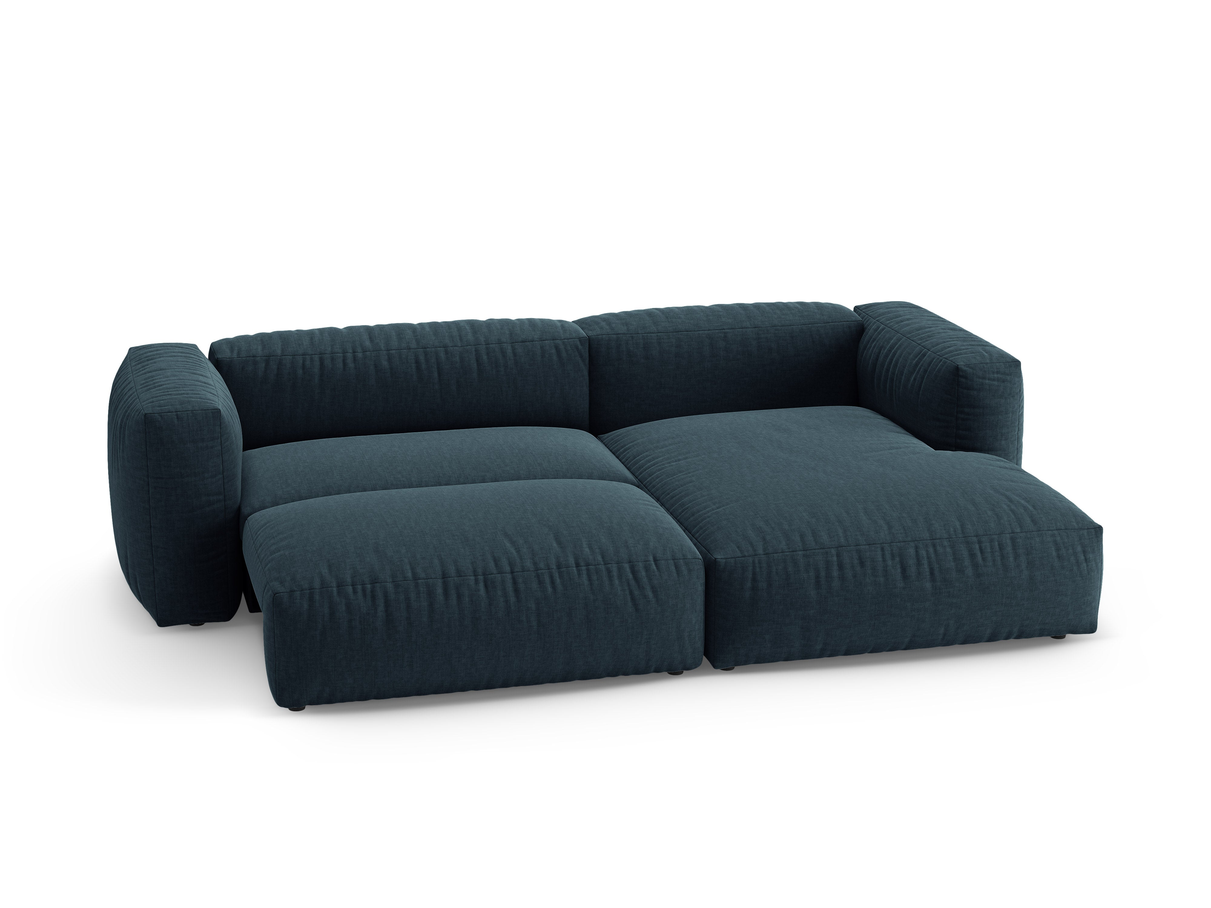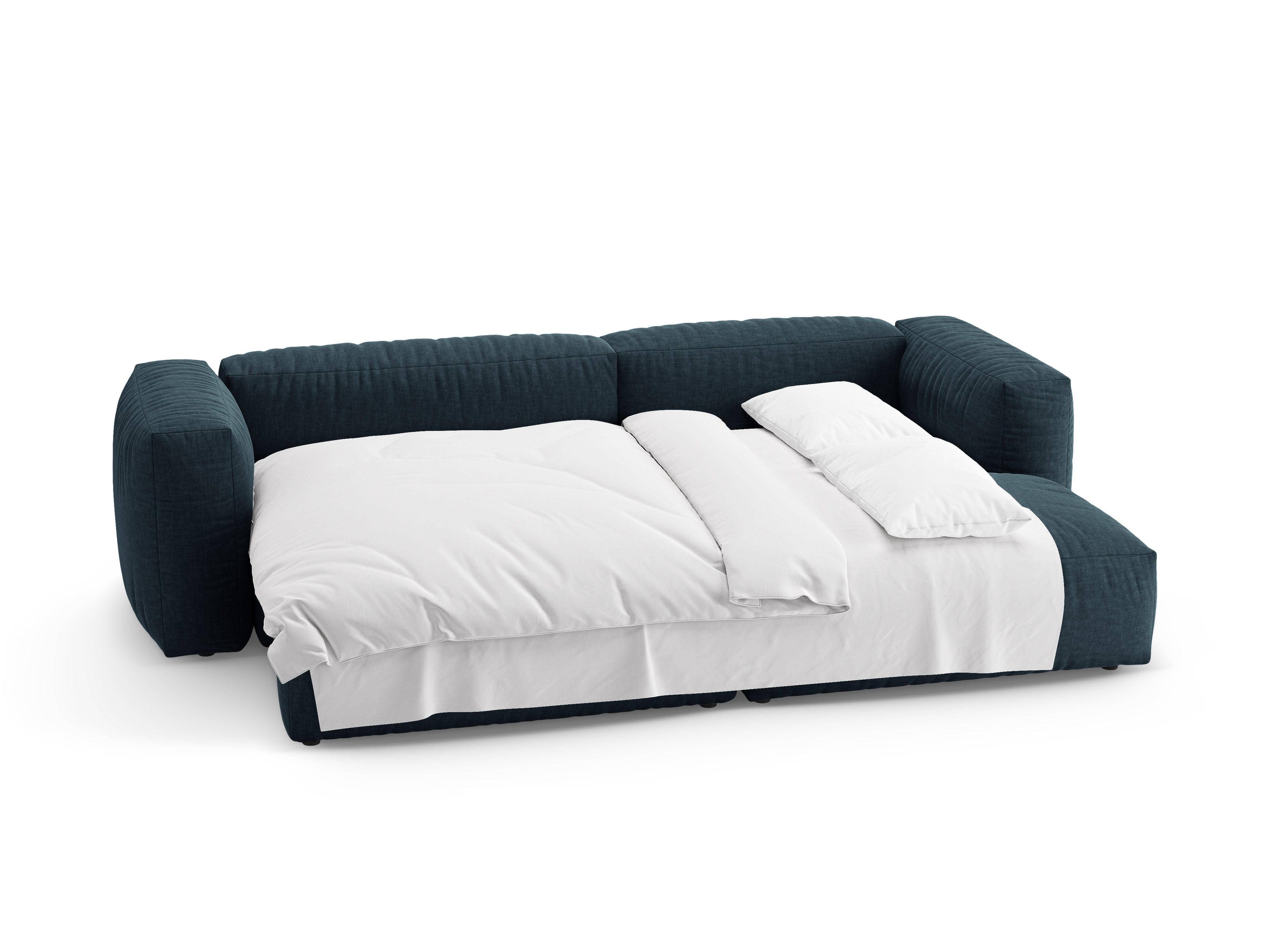 Hoekbank Martina met slaapfunctie is een voorstel voor mensen die op zoek zijn naar een combinatie van modern design en hoog gebruikscomfort. De afgeronde vorm en zachte zittingen en rugleuningen creëren een gezellige ruimte om overdag te ontspannen, en na het uitklappen bieden ze een comfortabele plek om te slapen. De subtiele, elegante lijn maakt het gemakkelijk om de hoekbank aan te passen aan verschillende interieurinrichtingen.
