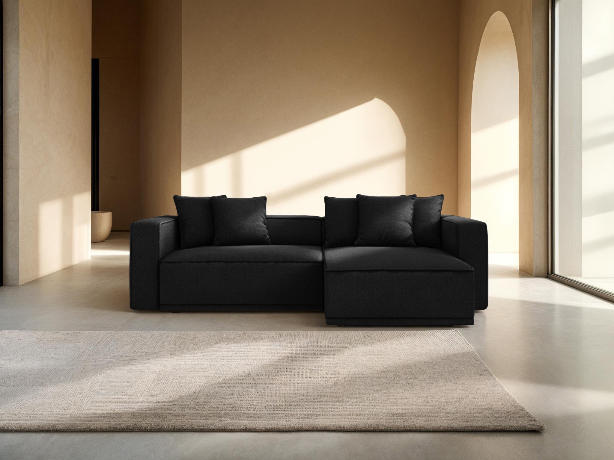 Rechthoekige bank met slaapfunctie RIBES zwart chenille