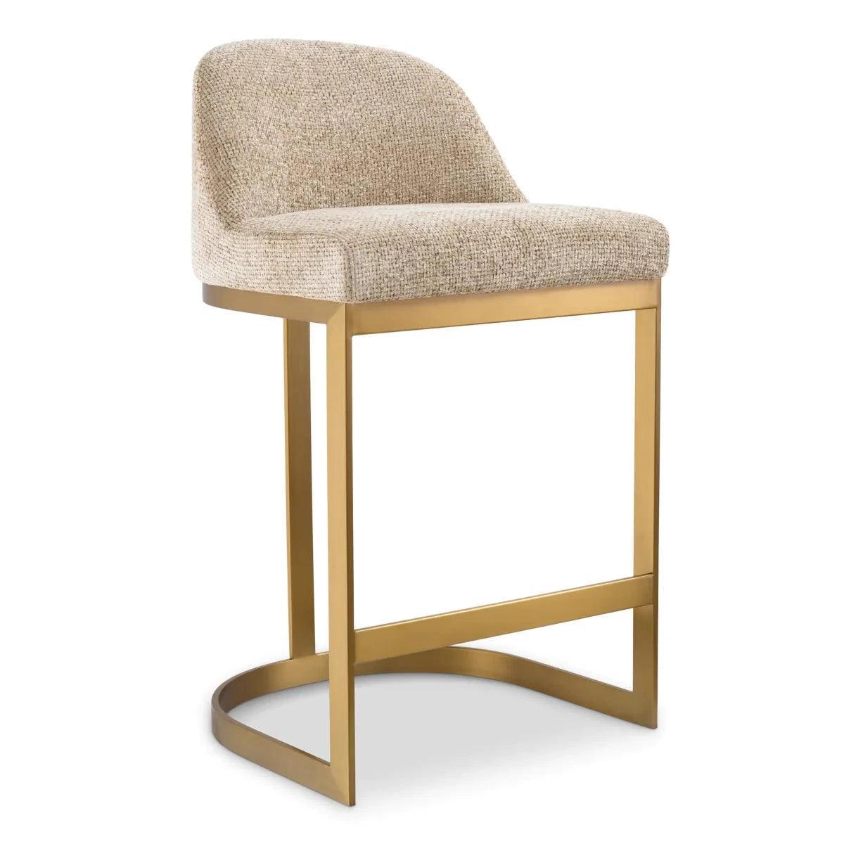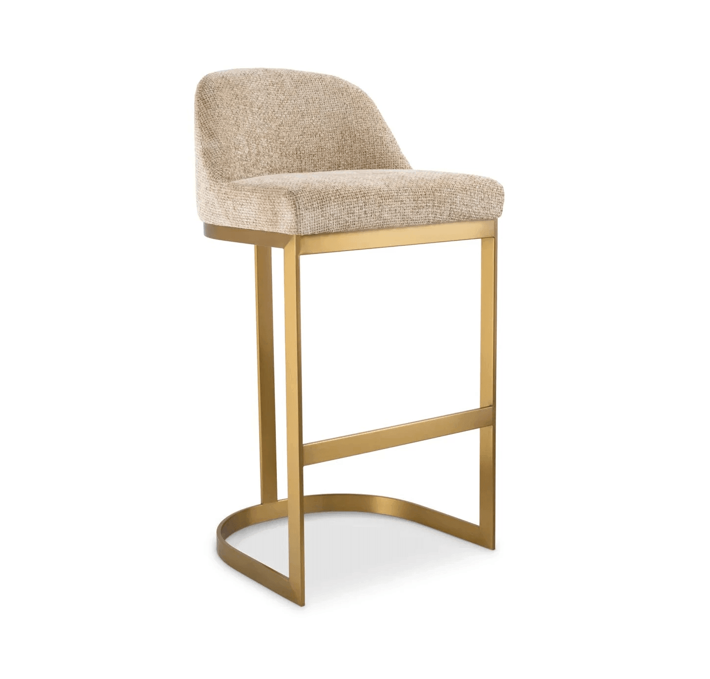 Wij presenteren de kruk Condos - een meesterwerk van luxe, beschikbaar in een betoverende, aangename stof. De afwerking van geborsteld messing is een essentieel element dat deze unieke toevoeging aan onze collectie een sfeer van verfijning en elegantie geeft. Dit is niet zomaar een kruk - het is een bijzondere aanvulling die de geest van elke exclusieve keuken of aanrecht verheft.