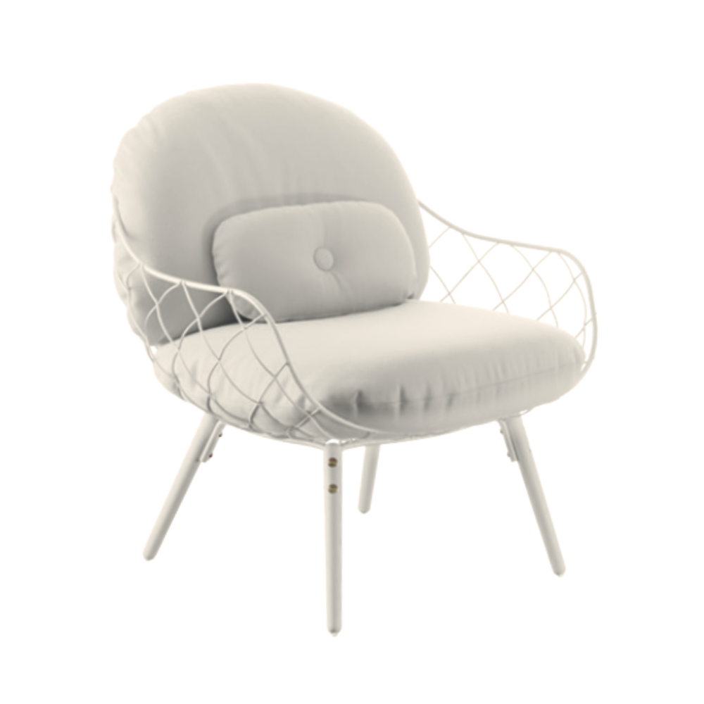 Fauteuil Piña is een uniek ontwerp van Jaime Hayón, gemaakt voor het merk Magis, dat verrast met zijn bijzondere vorm en uitstekende afwerking. Geïnspireerd door de structuur van een ananas, heeft de fauteuil een kenmerkende open constructie van gepoedercoat stalen gaas, die het zachte zit- en rugkussen omarmt. Dankzij het gebruik van kussens van polyurethaanschuim is het geheel niet alleen comfortabel, maar ook aangenaam in gebruik. De poten van massief essen – in een natuurlijke of geschilderde versie – completeren de elegante uitstraling van het meubel.