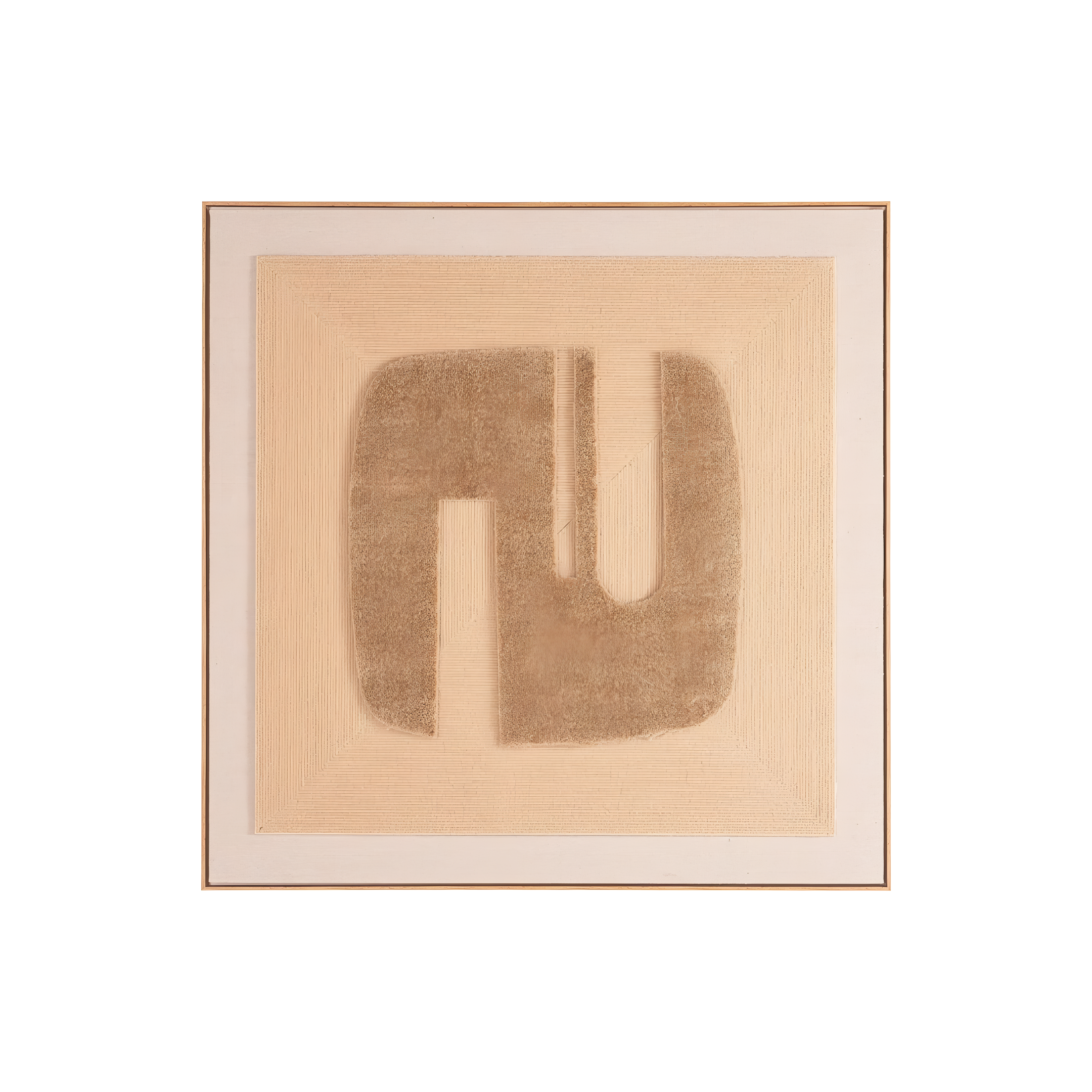 Elegante wanddecoratie Seda met een minimalistisch, geometrisch patroon dat de aandacht trekt met zijn subtiele textuur en natuurlijke kleuren. De combinatie van beige tinten met modern design zorgt ervoor dat de decoratie perfect past in Scandinavische, moderne of boho interieurs. Dit is een unieke toevoeging die warmte en een gezellige sfeer in de ruimte brengt.