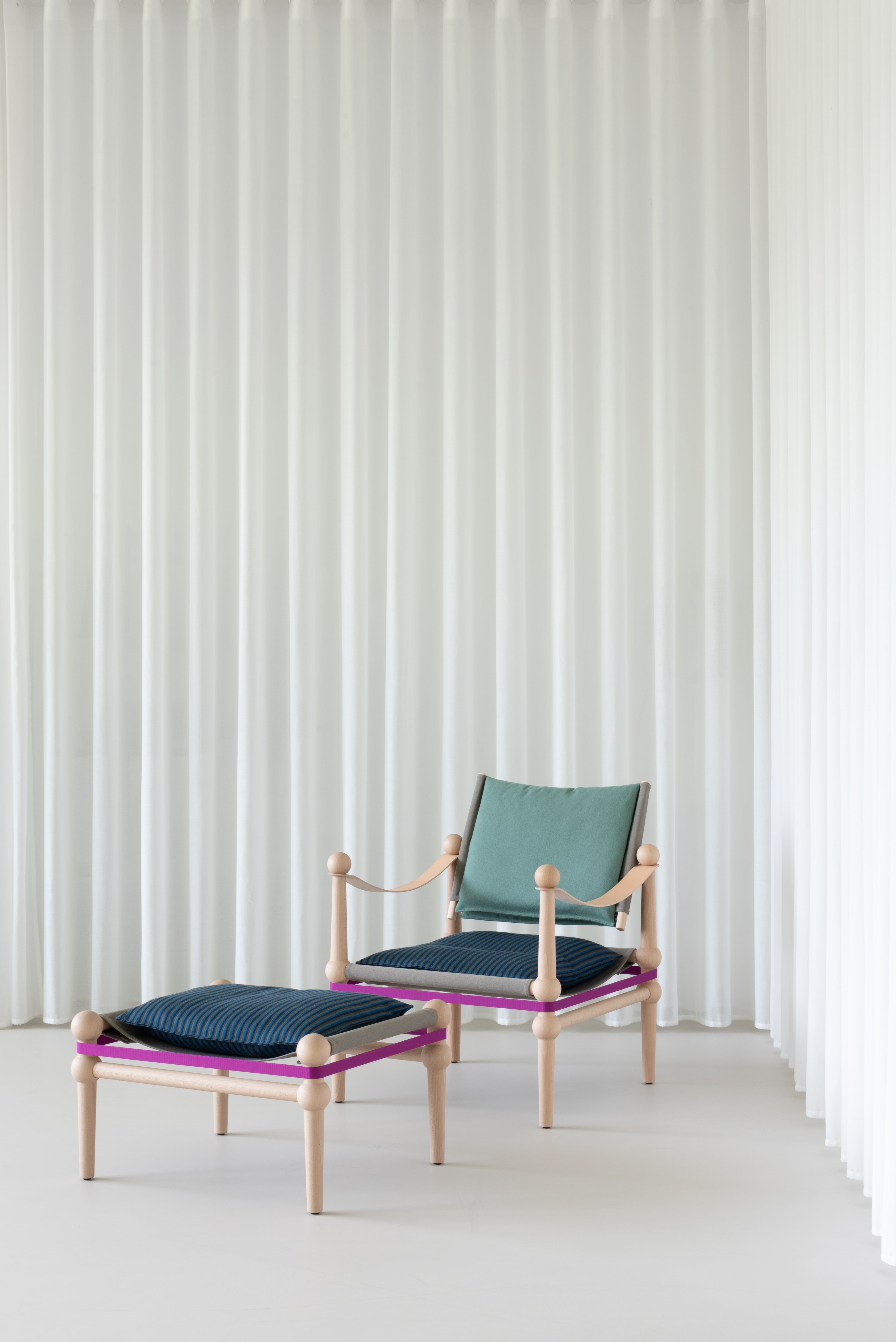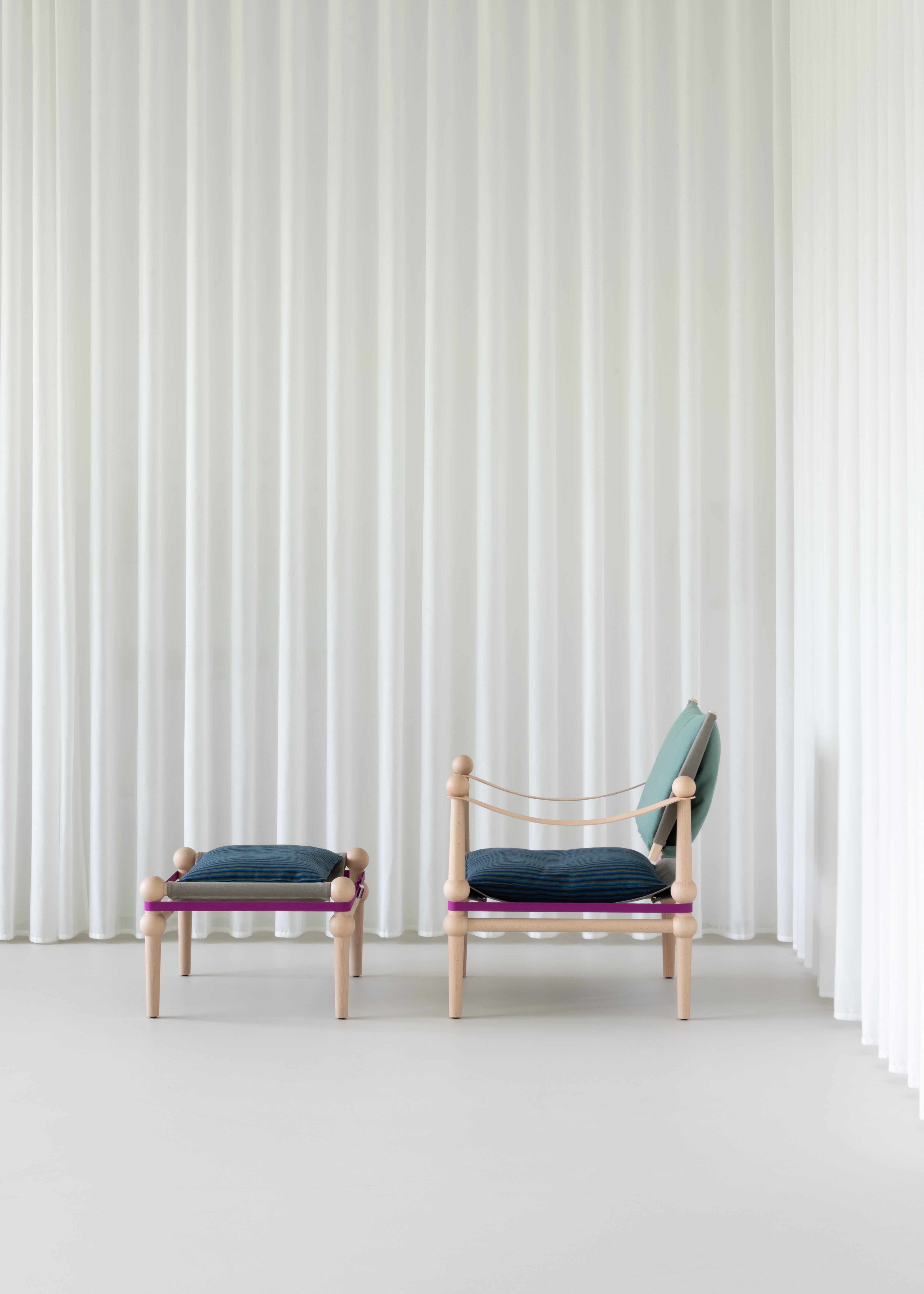 Otomane Twain is een aanvulling op de collectie ontworpen door Konstantin Grcic in samenwerking met Hella Jongerius in 2024. Het frame is gemaakt van massief beukenhout en is beschikbaar in twee afwerkingsvarianten: natuurlijk en zwart gekleurd met aniline. De zitting, gebaseerd op zelfdragende stof, wordt aangevuld met een zachte kussen met een afneembare stofhoes. Het geheel wordt ondersteund door een spanband van polyamide, en in de set zijn ook vilten onderzetters inbegrepen ter bescherming van de vloer.