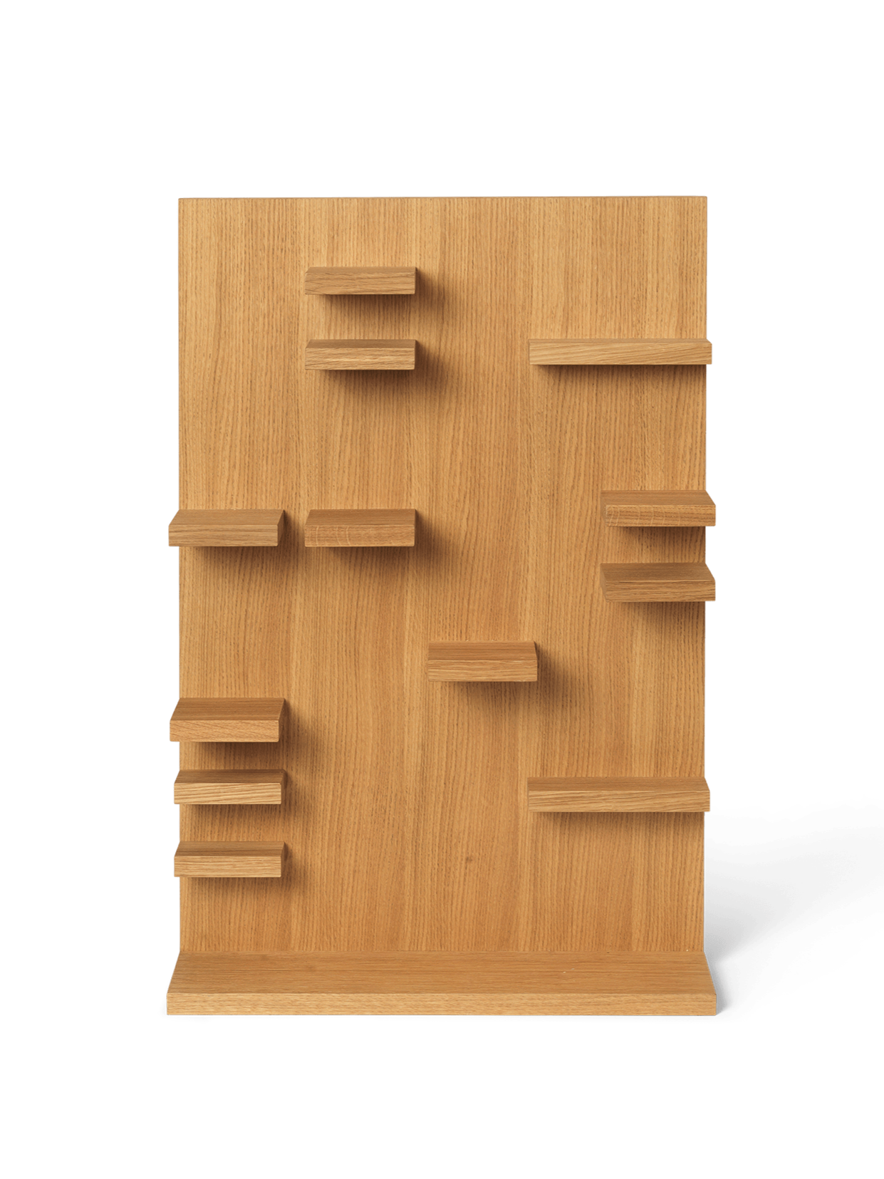 De Parade Plank is een elegante plank die functionaliteit verbindt met een uitzonderlijk ontwerp, geïnspireerd op traditionele Deense sættekasser – opbergdozen voor kleine spulletjes. In samenwerking met de kunstenares Leise Dich Abrahamsen is er een meubelstuk ontstaan dat het mogelijk maakt om persoonlijke, charmante tentoonstellingen van favoriete souvenirs en kleine schatten te creëren. Gemaakt van duurzame, gecertificeerde eiken multiplex met een MDF-kern, is de Parade Plank een combinatie van esthetiek en stevigheid die perfect in verschillende interieurstijlen past, en harmonie en elegantie in de ruimte brengt.