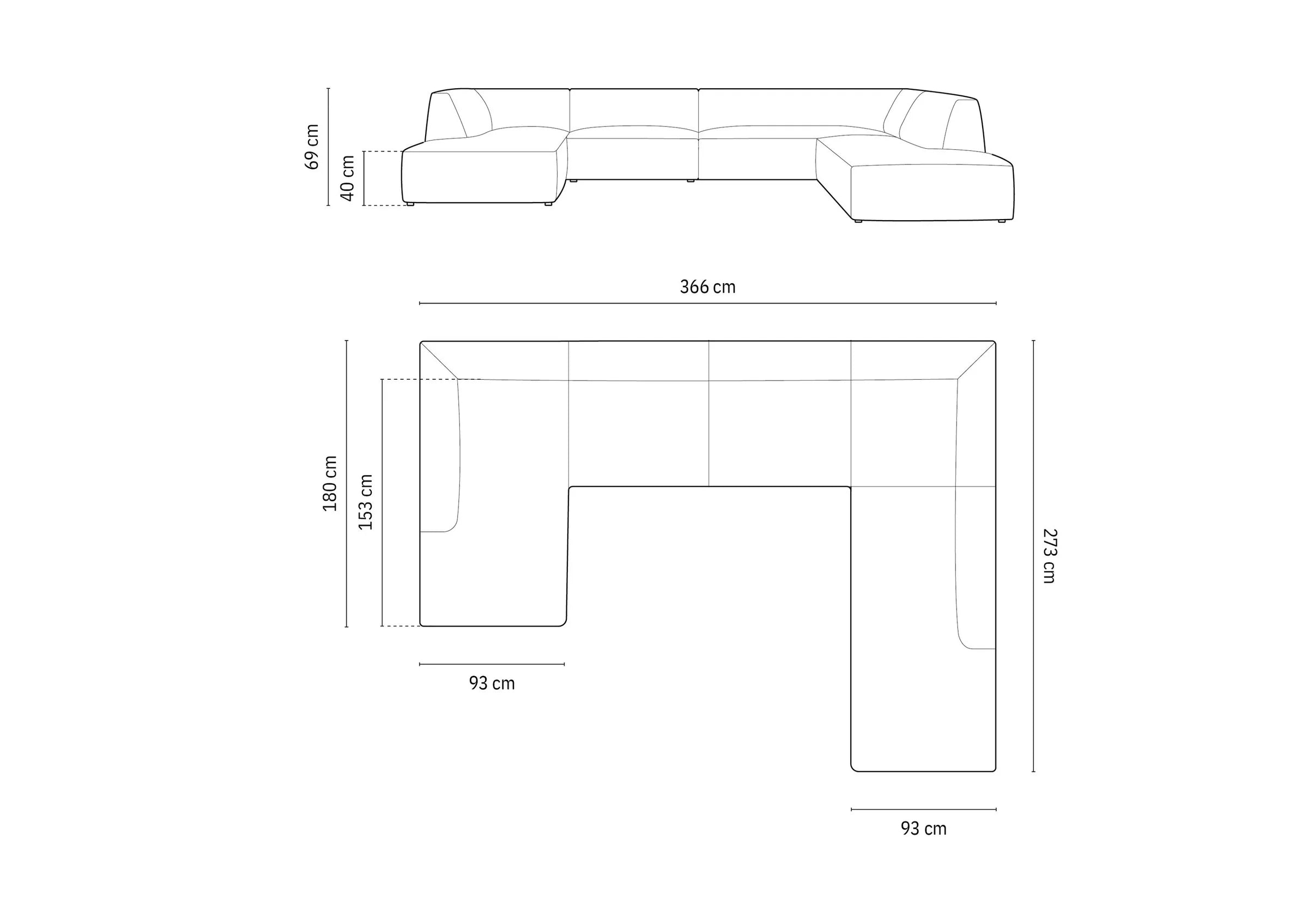 De lage, zwarte poten benadrukken de moderne en tegelijkertijd evenwichtige vorm van het meubel. Ook de bekleding, gemaakt van trendy ribfluweel, trekt de aandacht. Ruby past perfect in minimalistische en elegante interieurs. Het is een uitstekende plek om te ontspannen na een zware dag of om te genieten van een luie avond met uw favoriete boek.