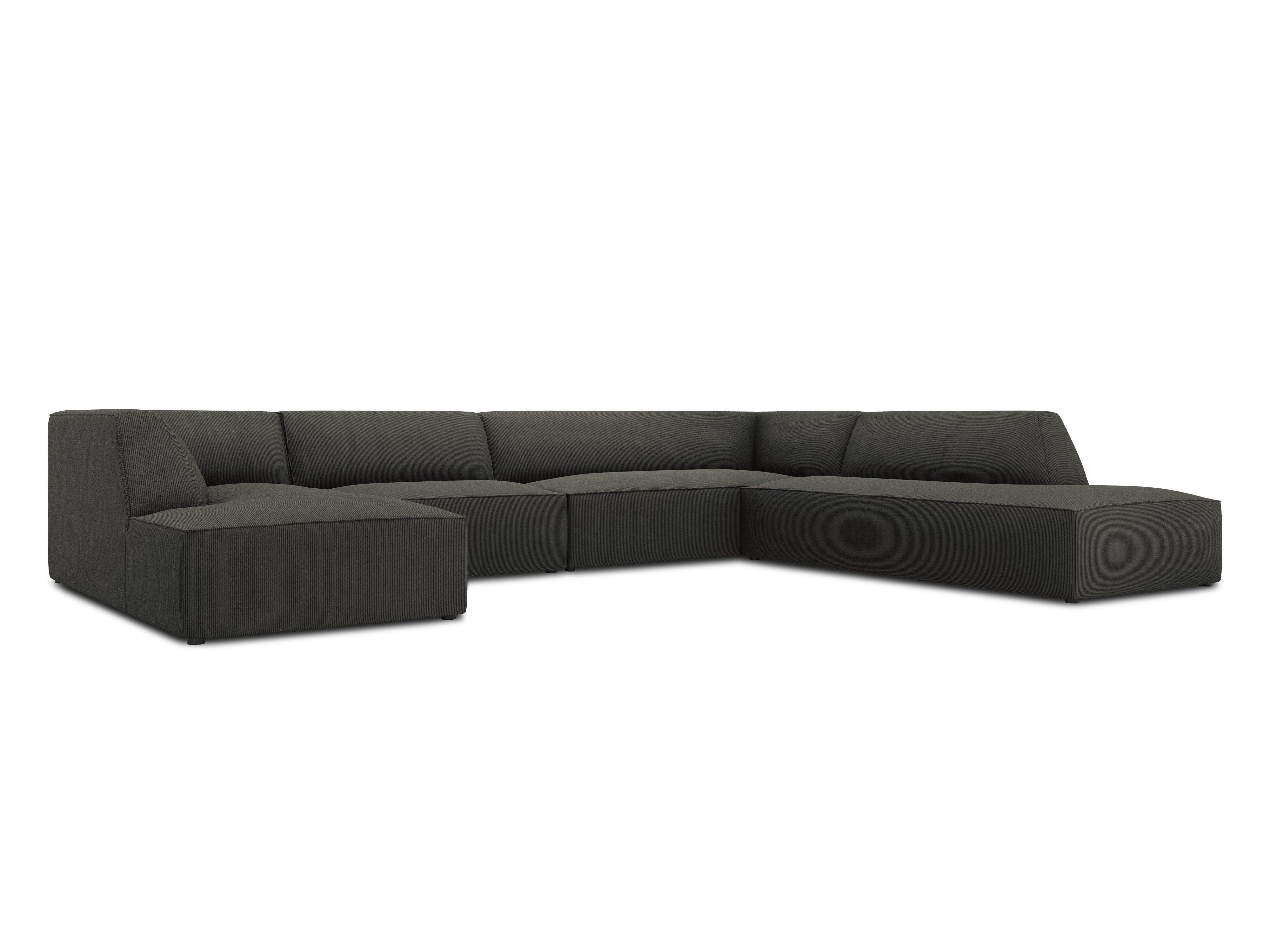 U-vormige hoekbank van ribstof rechts RUBY donkergrijs