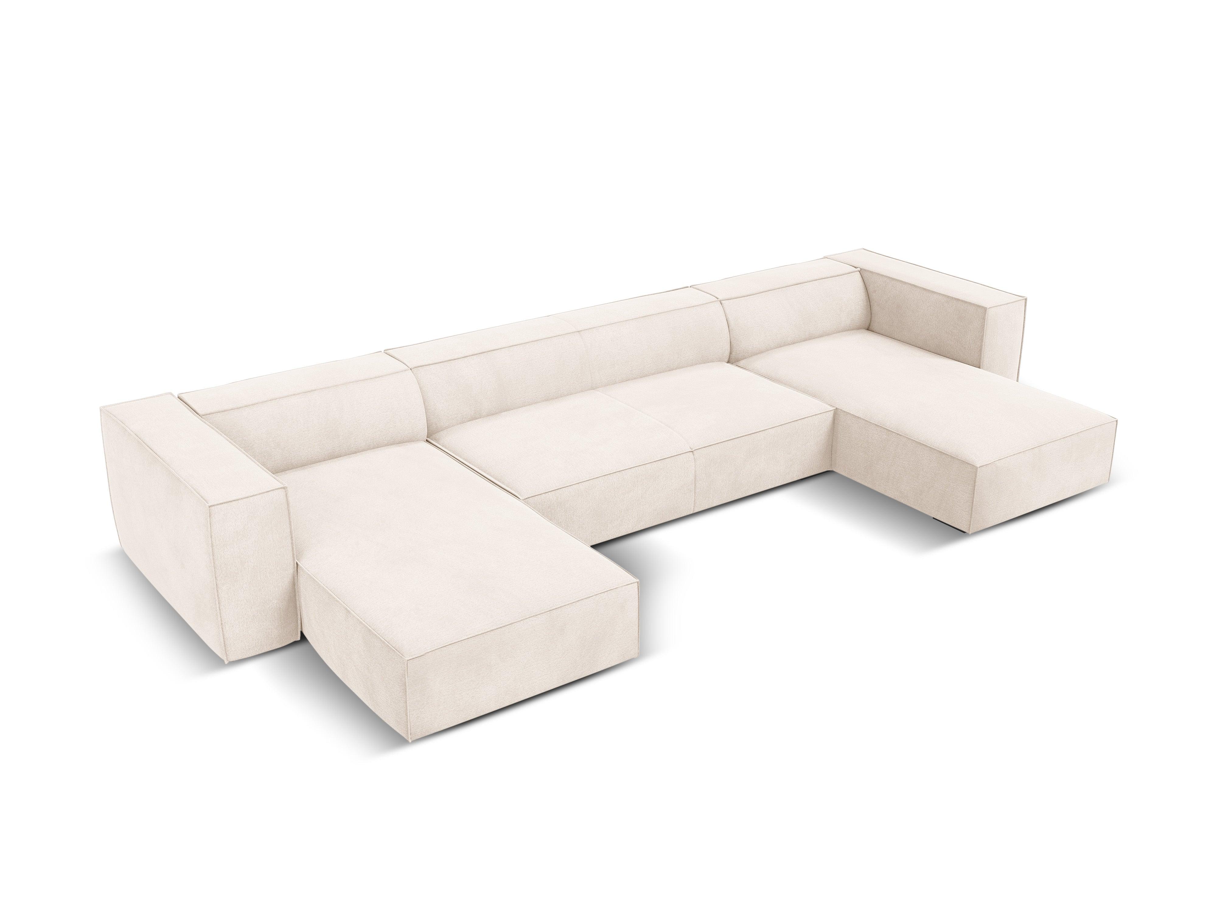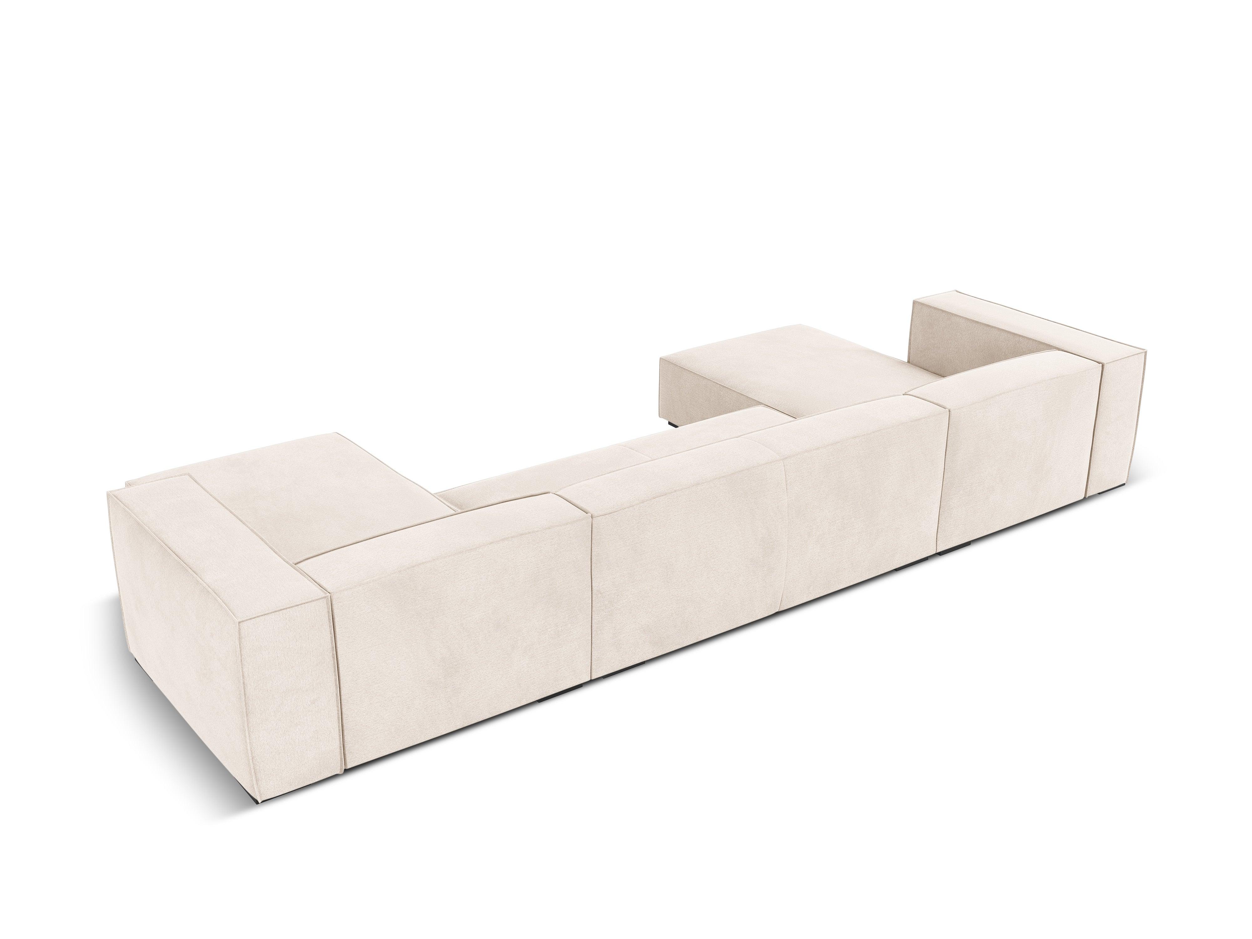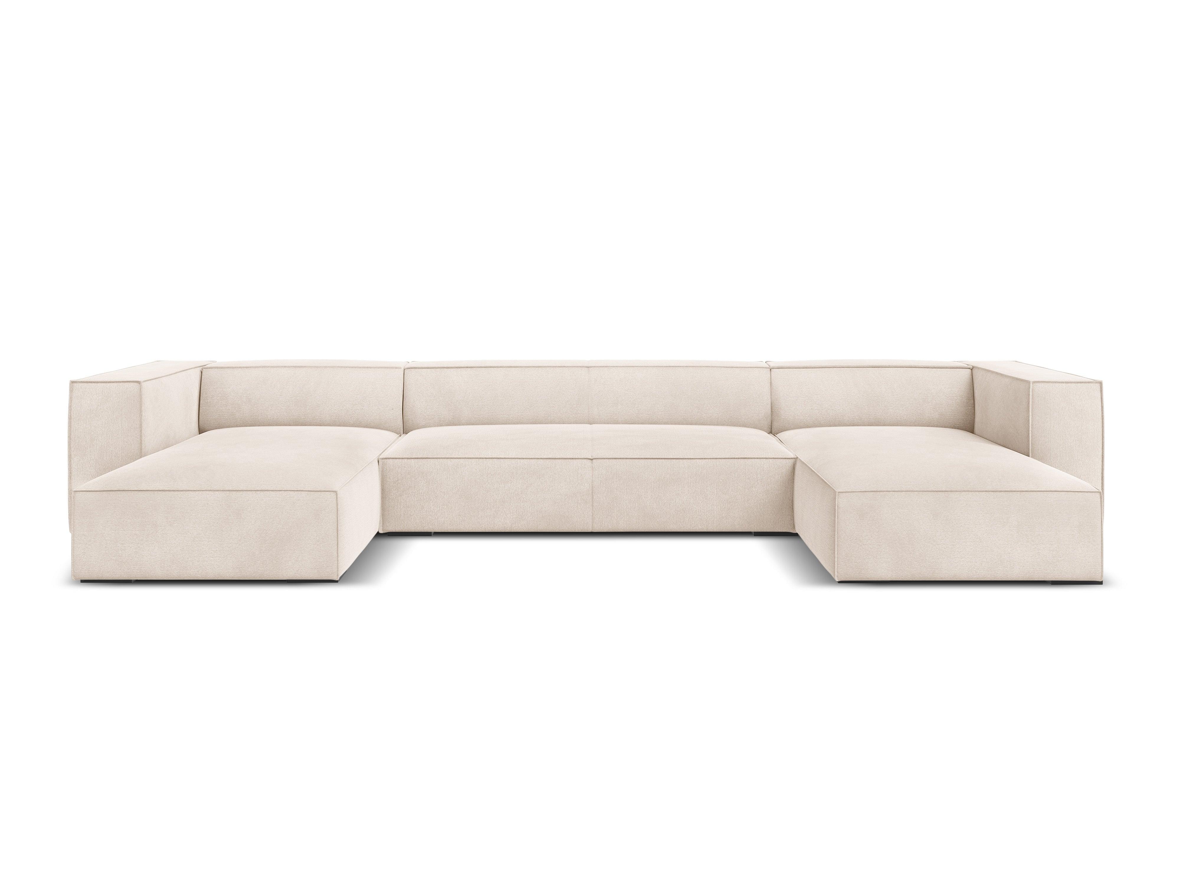 Hoekbank voor zes personen Madame met een uitgesproken karakter en elegante afwerking is de perfecte keuze voor een moderne woonkamer. De diepe zitting is zowel ideaal voor sociale bijeenkomsten als voor momenten van ontspanning na een lange dag. Het biedt de mogelijkheid om comfortabel te ontspannen in verschillende posities. Met een laag profiel, brede armleuningen en rugleuningen vormt het een gezellige vorm.