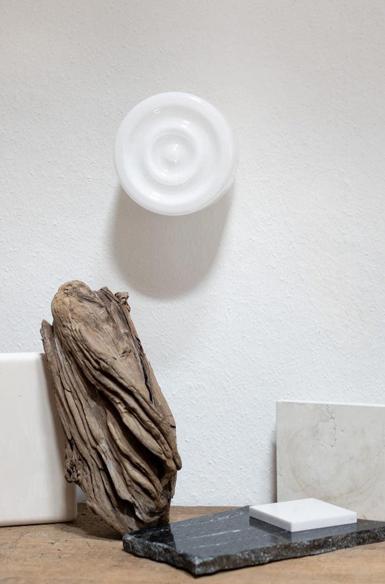 Z Gdyni do Nowego Jorku, a w drodze wykwintne kolacje i wieczory towarzyskie w kunsztownych wnętrzach w stylu art déco. Kinkiet Atlantic nawiązuje do trasy statku MS Batorego, nazywanego pływającym salonem i ambasadą kultury polskiej. Inspirowany rozchodzącymi się kręgami wody klosz został wykonany z trójwarstwowego szkła opalowego według naszego projektu przez lokalnych rzemieślników. Jego falisty wzór widoczny jest nie tylko przy zapalonym świetle, ale również zgaszonym. Solidne, mosiężne mocowanie odwołuje się do charakterystycznego kształtu okien na statku, zwanych bulajami.