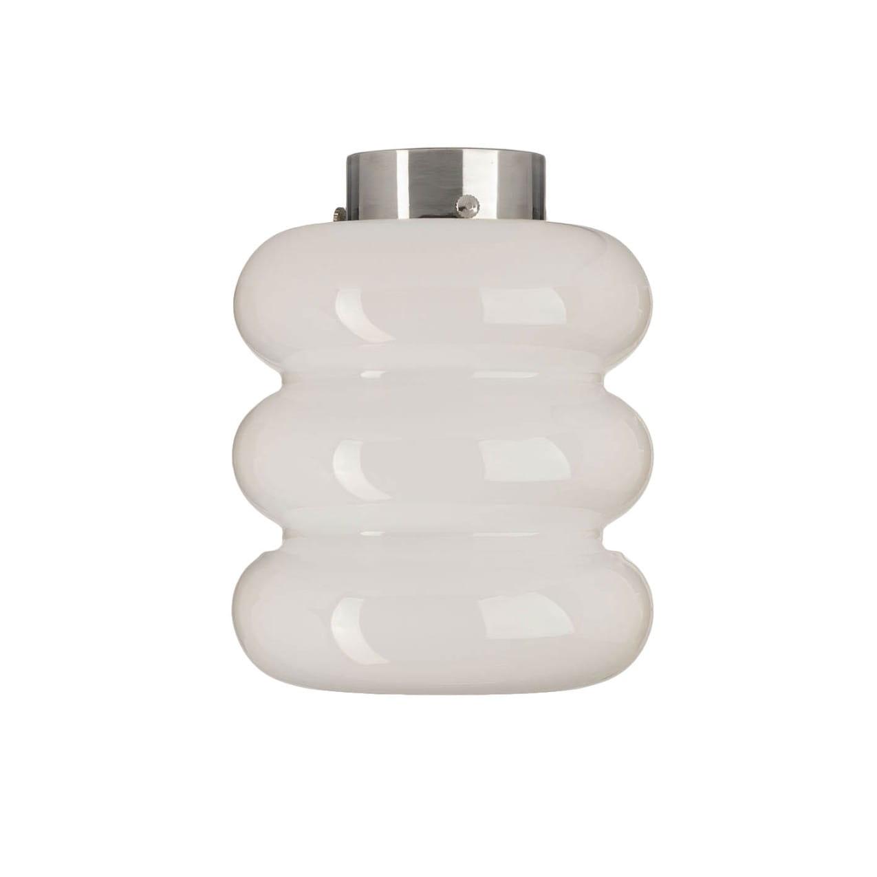 De lamp Bibe trekt de aandacht met zijn delicate, maar tegelijkertijd eenvoudige en geometrische vorm, geïnspireerd op het iconische ontwerp van de Bibendum-stoel. De witte, opale kap in een melkachtige tint draagt bij aan de vrouwelijke aura, terwijl de eenvoudige bevestiging van nikkel elegantie toevoegt.