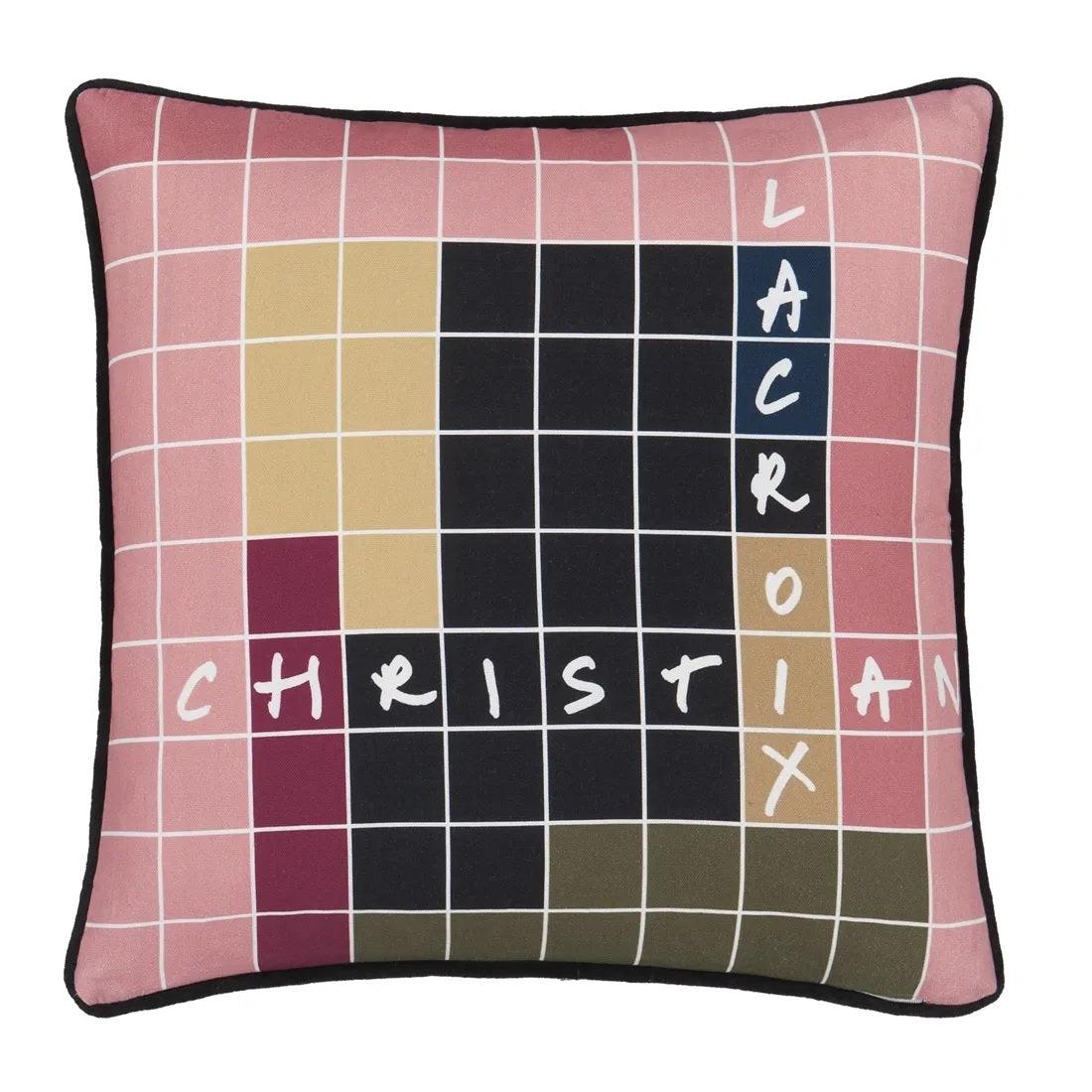 Grafisch kussen Reve De Papier is een waar meesterwerk, waar zorgvuldig uitgesneden details in zwart een harmonieuze compositie vormen tegen een achtergrond van subtiele tinten. De terugkeer naar digitale druk in een tegelpatroon, met de kenmerkende tekst Christian Lacroix, is een manifest van modern design, terwijl het ook een eerbetoon is aan ambachtelijke tradities.
