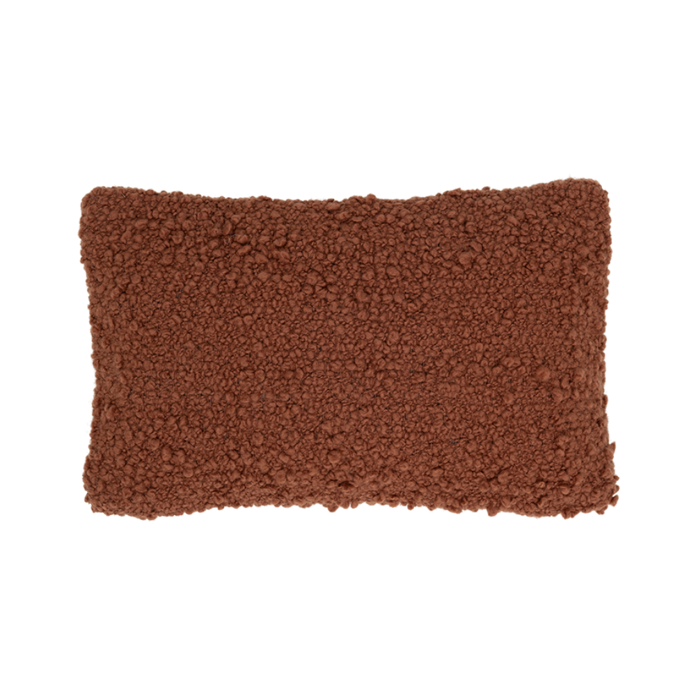 Kussen Lina is een warme, gezellige accent die perfect is voor koelere dagen. Handgemaakt van wol in de techniek van losse bouclé-weving, verrast het met zijn zachtheid, textuur en unieke karakter – elk kussen is uniek.