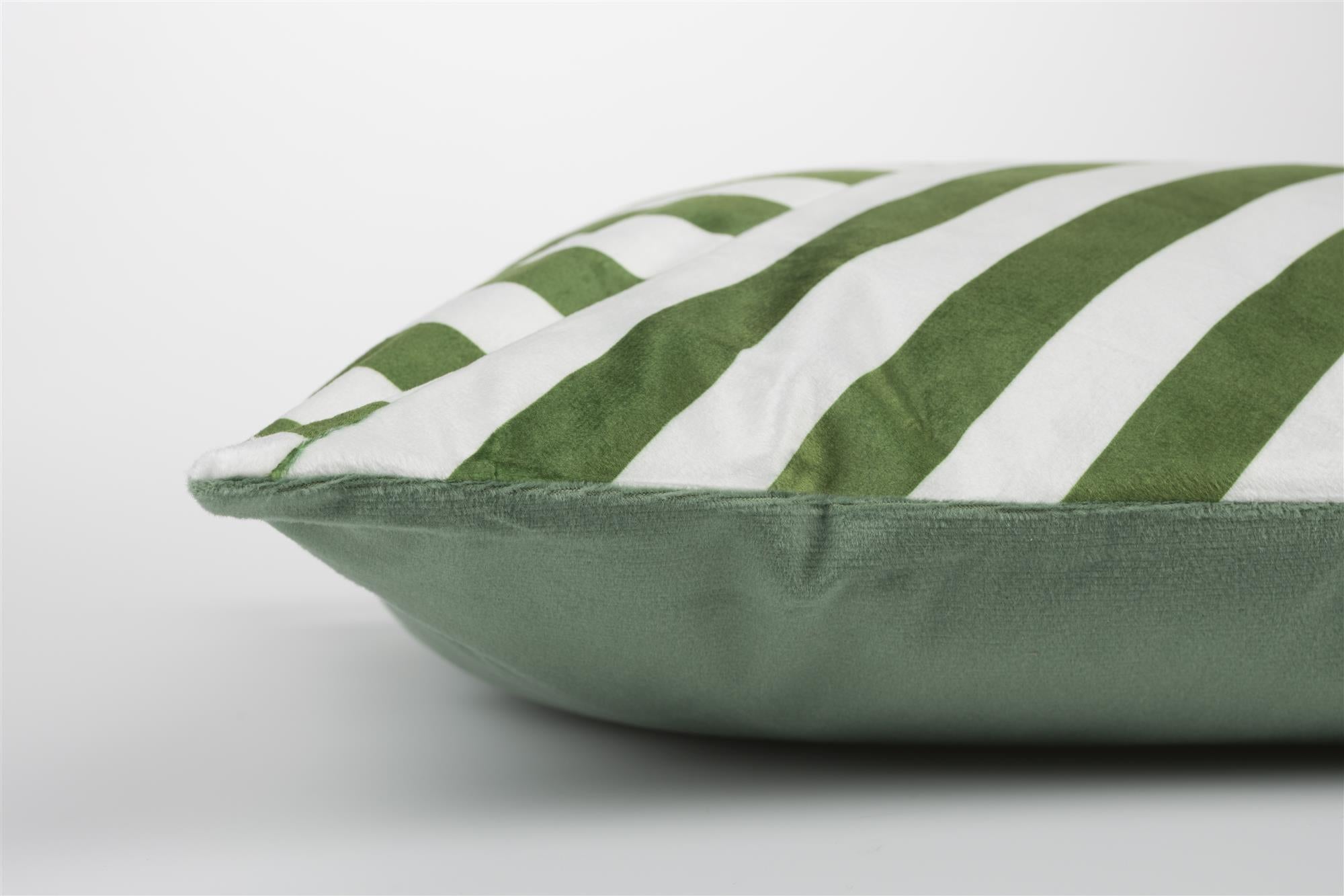 Dekoracyjna poduszka przyciąga wzrok nowoczesnym wzorem geometrycznych pasów ułożonych w formę symetrycznego krzyża. Połączenie głębokiej zieleni z klasyczną bielą nadaje jej świeżości i wyrazistości, dzięki czemu świetnie uzupełni wnętrza w stylu nowoczesnym, skandynawskim lub urban jungle.