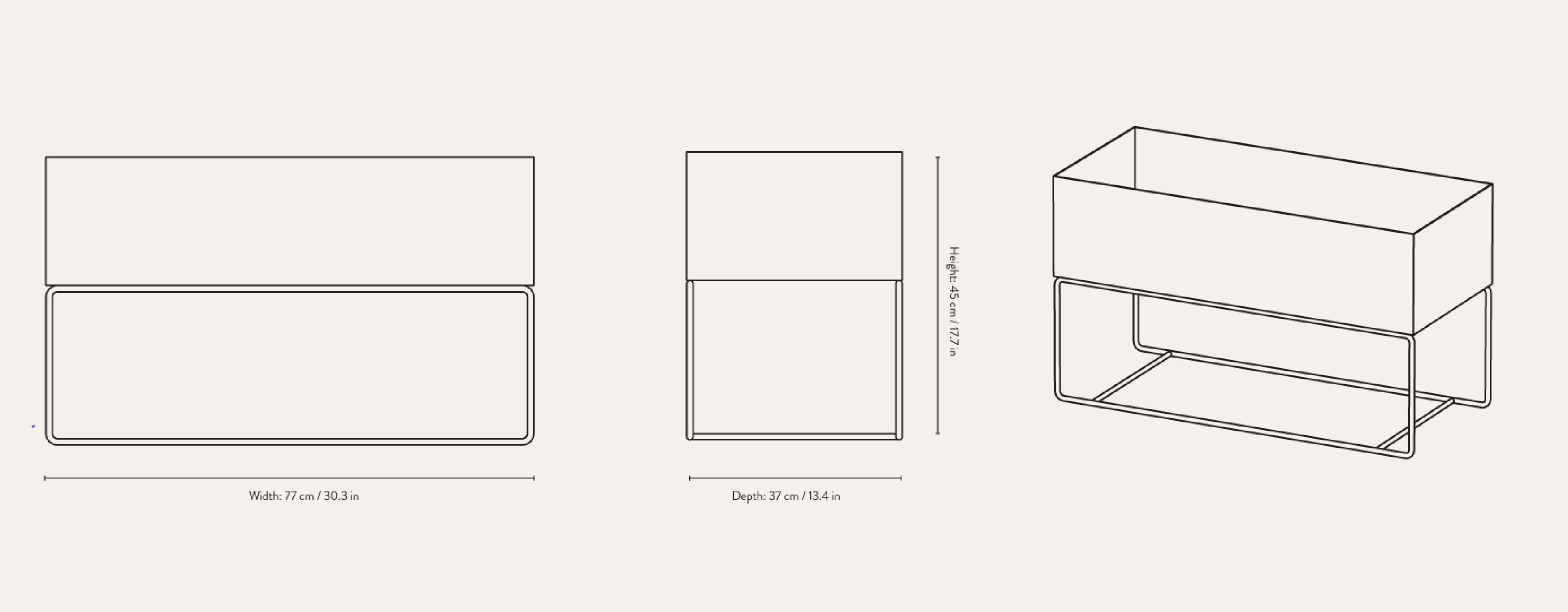 De grote, lage en diepe plantentrog Plant Box, gemaakt van poedergecoat staal, is de ideale oplossing voor het opbergen van planten, maar is ook perfect voor het opbergen van alledaagse spulletjes – van tijdschriften en boeken tot speelgoed of kantooraccessoires. Geplaatst op een slanke, maar stabiele basis, past het tijdloze ontwerp in een klassieke beige tint perfect in elk interieur. U kunt het ook gebruiken met een bijpassend deksel, waardoor er extra gebruiksoppervlak ontstaat.