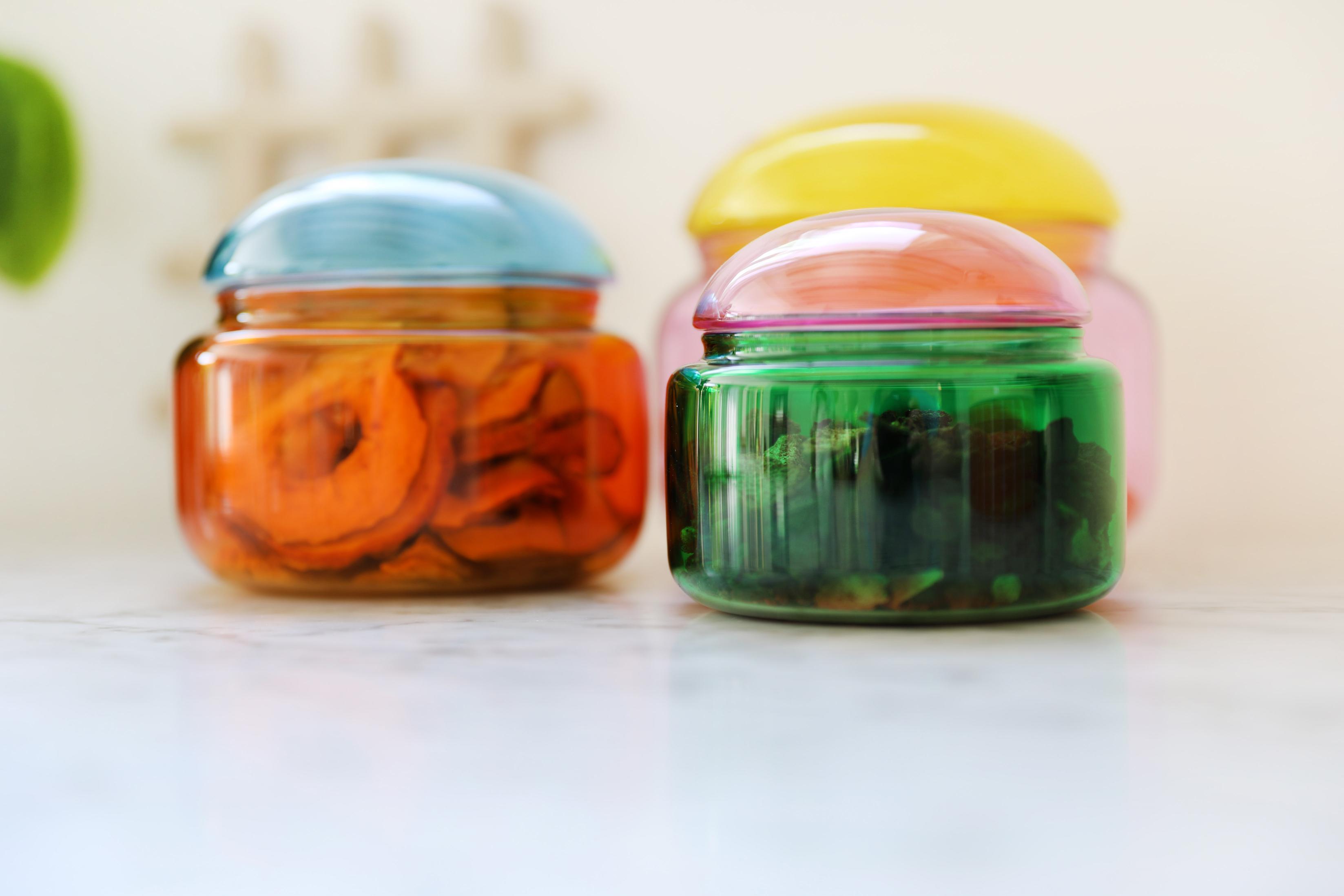 Opbergdoos Puffy is een echte sfeermaker – zijn levendige kleuren en zachte, vriendelijke vorm toveren meteen een glimlach op uw gezicht. Het decoratieve uiterlijk gaat hand in hand met functionaliteit, waardoor de opbergdoos perfect als stijlvol element in de keuken, eetkamer of woonkamer kan dienen.