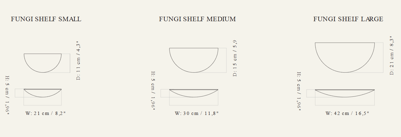 Planken kunnen op verschillende manieren worden gebruikt – als nachtkastje naast het bed, een decoratief accent in de woonkamer, een kruidenplank in de keuken of extra opbergruimte voor spulletjes in de kinderkamer. Beschikbaar in drie maten, kunnen ze afzonderlijk of in sets worden gemonteerd, waardoor een samenhangende en aangename compositie geïnspireerd door de natuur ontstaat.