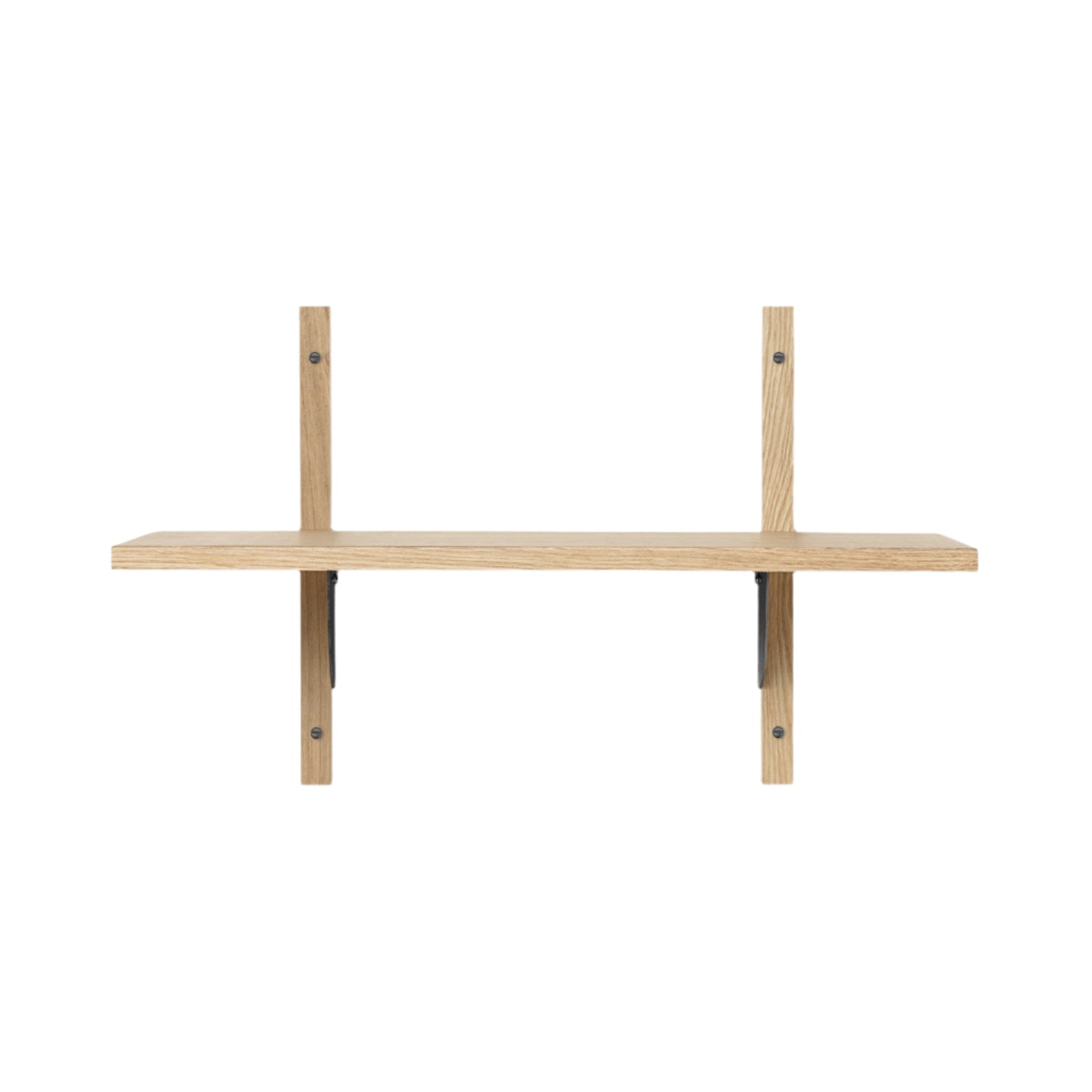 Plank Sector Narrow is een hedendaagse interpretatie van klassieke boekenplank systemen in mid-century stijl, gemaakt van natuurlijk eikenfineer en afgewerkt met elegante, messing steunen. De robuuste constructie en minimalistische vorm zorgen ervoor dat het perfect past in moderne en klassieke interieurontwerpen. Zichtbare montagemiddelen geven het geheel architectonische expressie en benadrukken het karakter van het ontwerp.