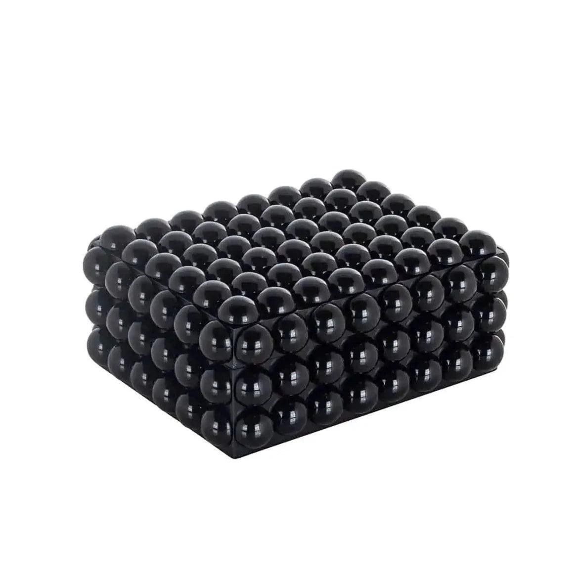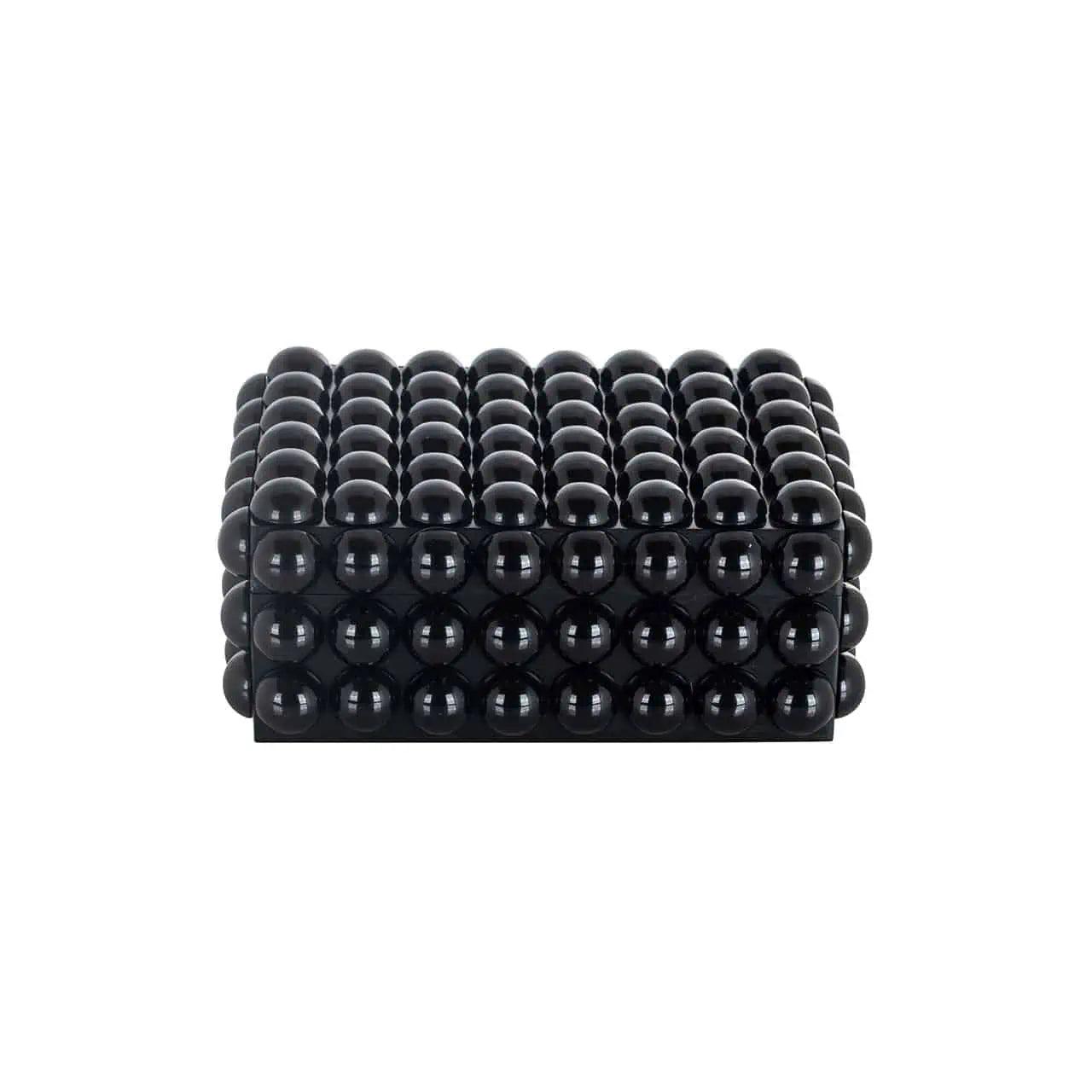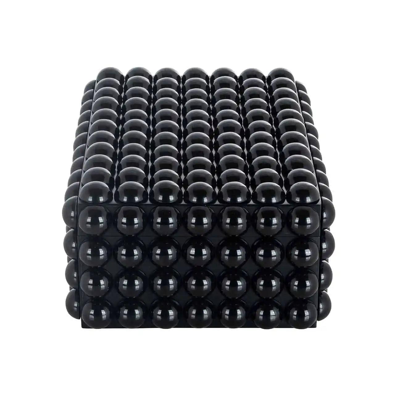 De zwarte doos Batool presenteert zich uiterst stijlvol en exclusief. Zijn klassieke kleur geeft het een tijdloze uitstraling die perfect samengaat met verschillende interieurstijlen. Maar het zijn de bijzondere details in de vorm van bubbelvormige elementen die de doos niet alleen een praktisch voorwerp maken, maar ook een decoratief element in het interieur.