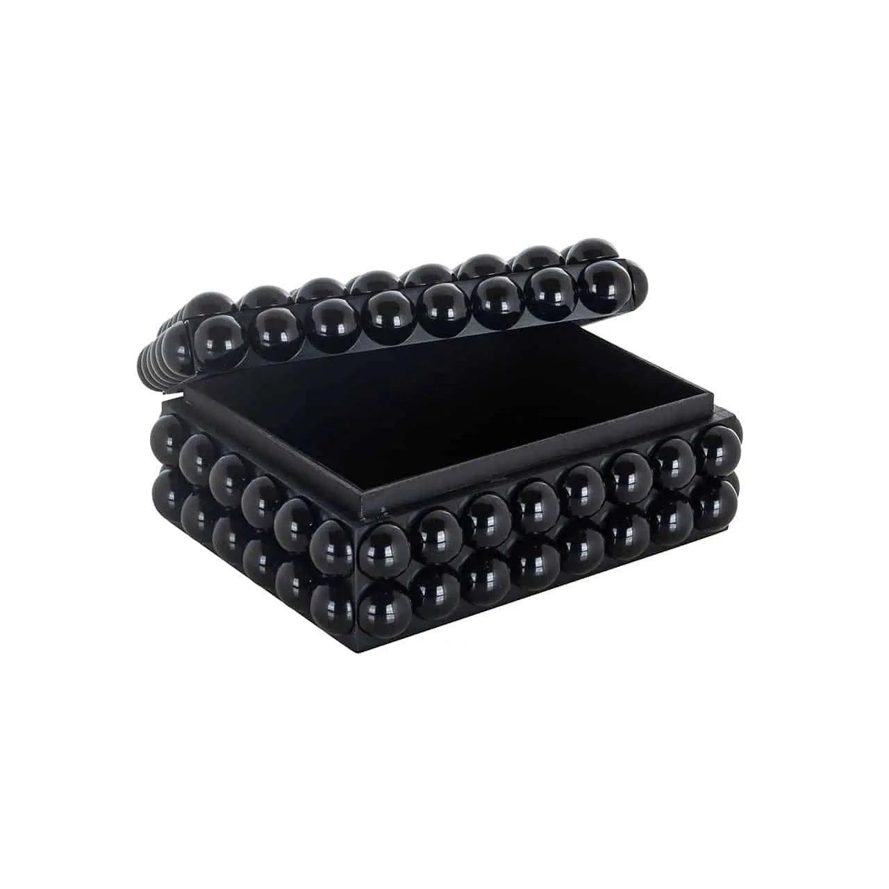 De doos Batool in zwart is een elegante en stijlvolle oplossing voor het opbergen van uw sieraden en waardevolle accessoires. Zijn rechthoekige vorm in combinatie met elementen die op bubbels lijken, geeft het een unieke charme en brengt een werkelijk sprookjesachtig element in de ruimte.