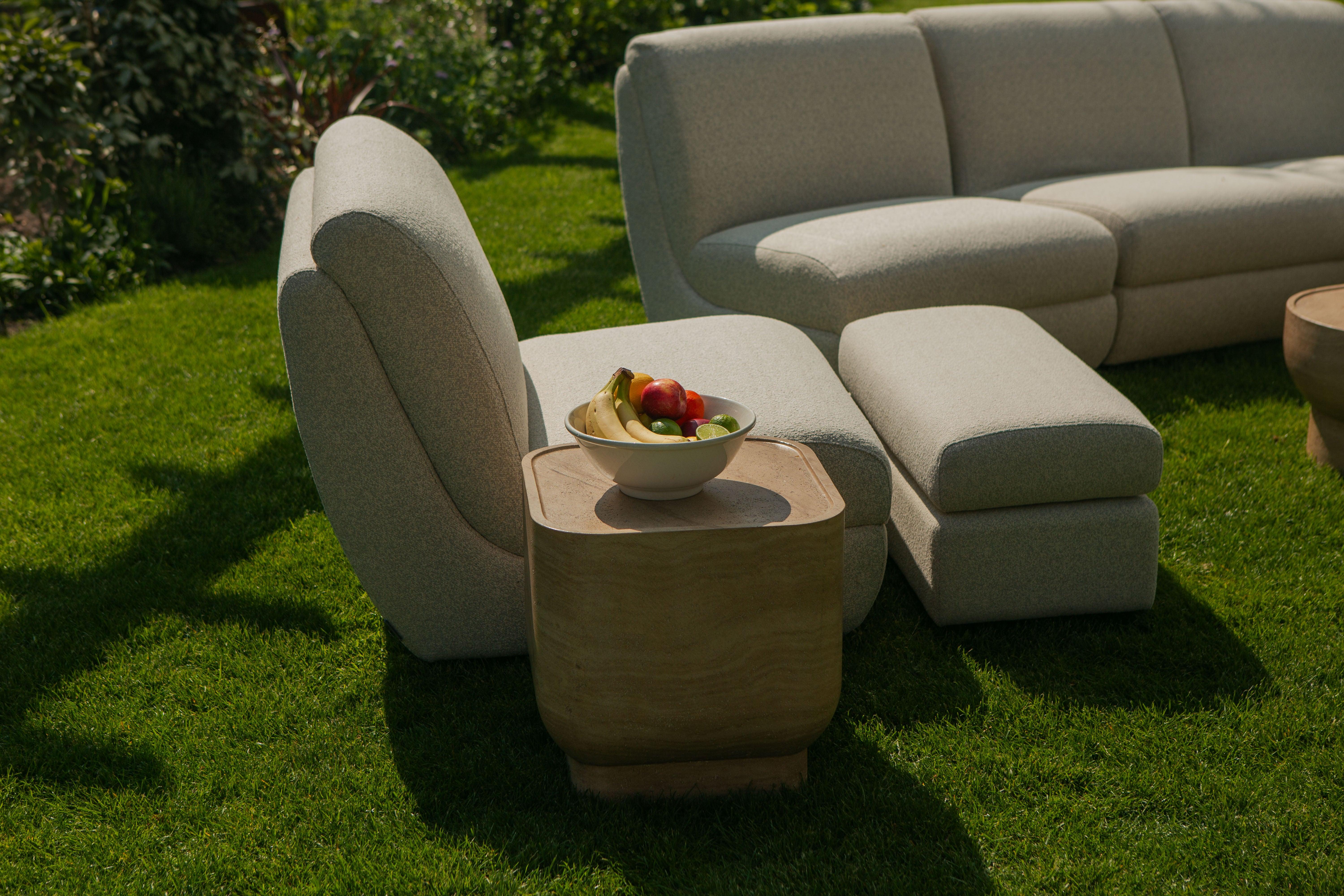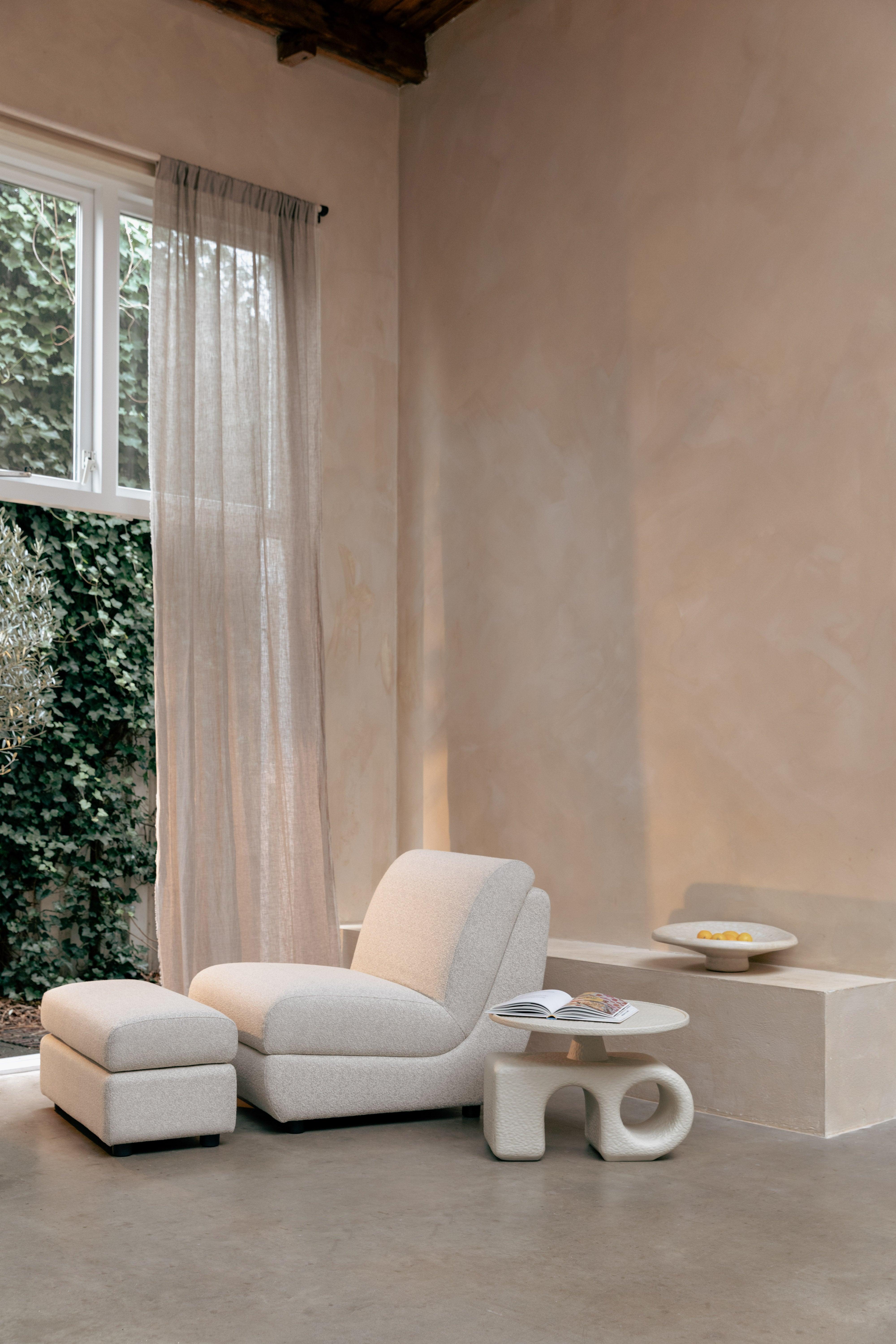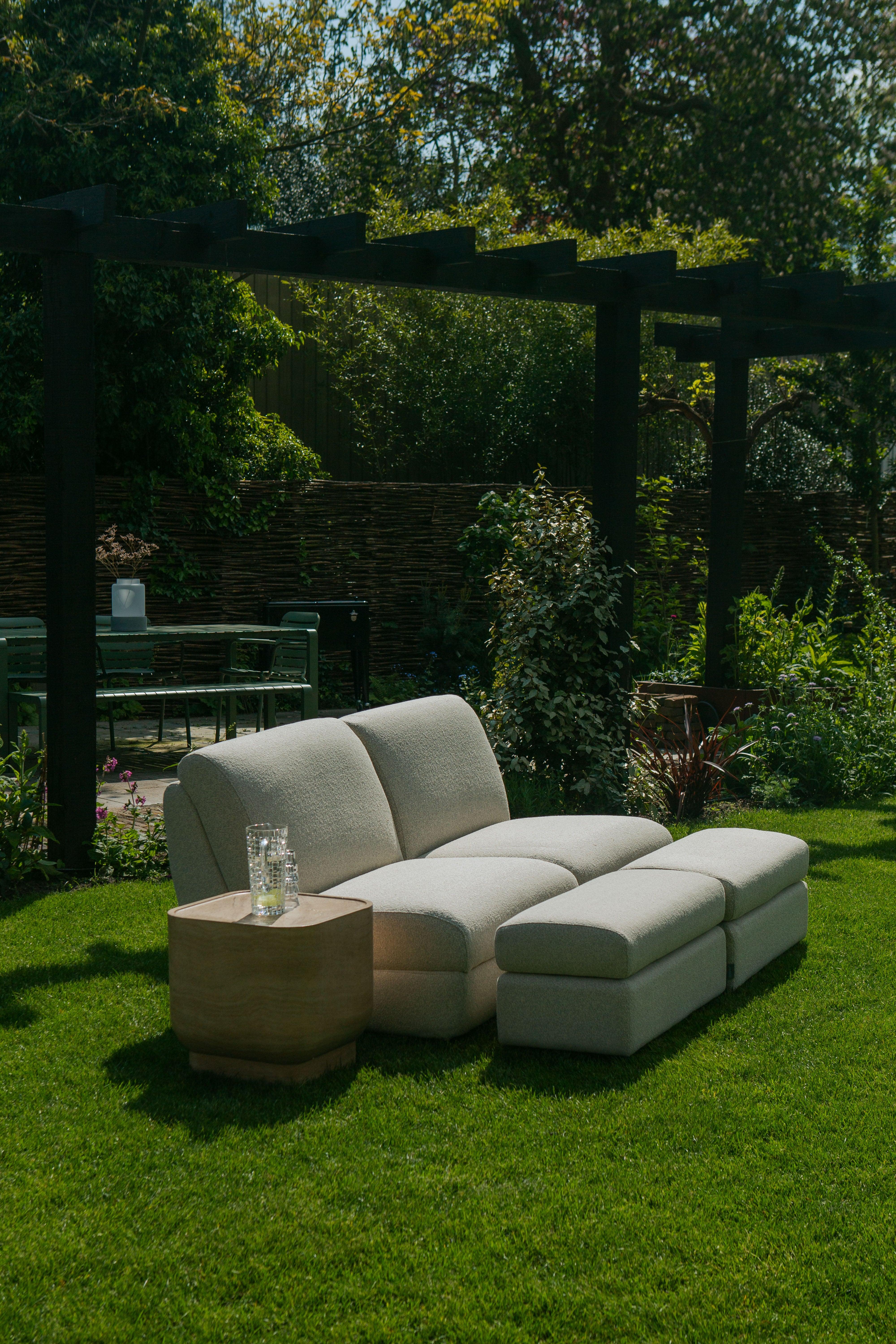 Ongeacht of u ontspant in de woonkamer of geniet van de zon op het terras, de poef Mississippi gaat moeiteloos van de elegantie van het interieur naar het comfort van de buitenlucht. De stof in gebroken wit is weerbestendig en biedt stijl, ongeacht regen of zon.