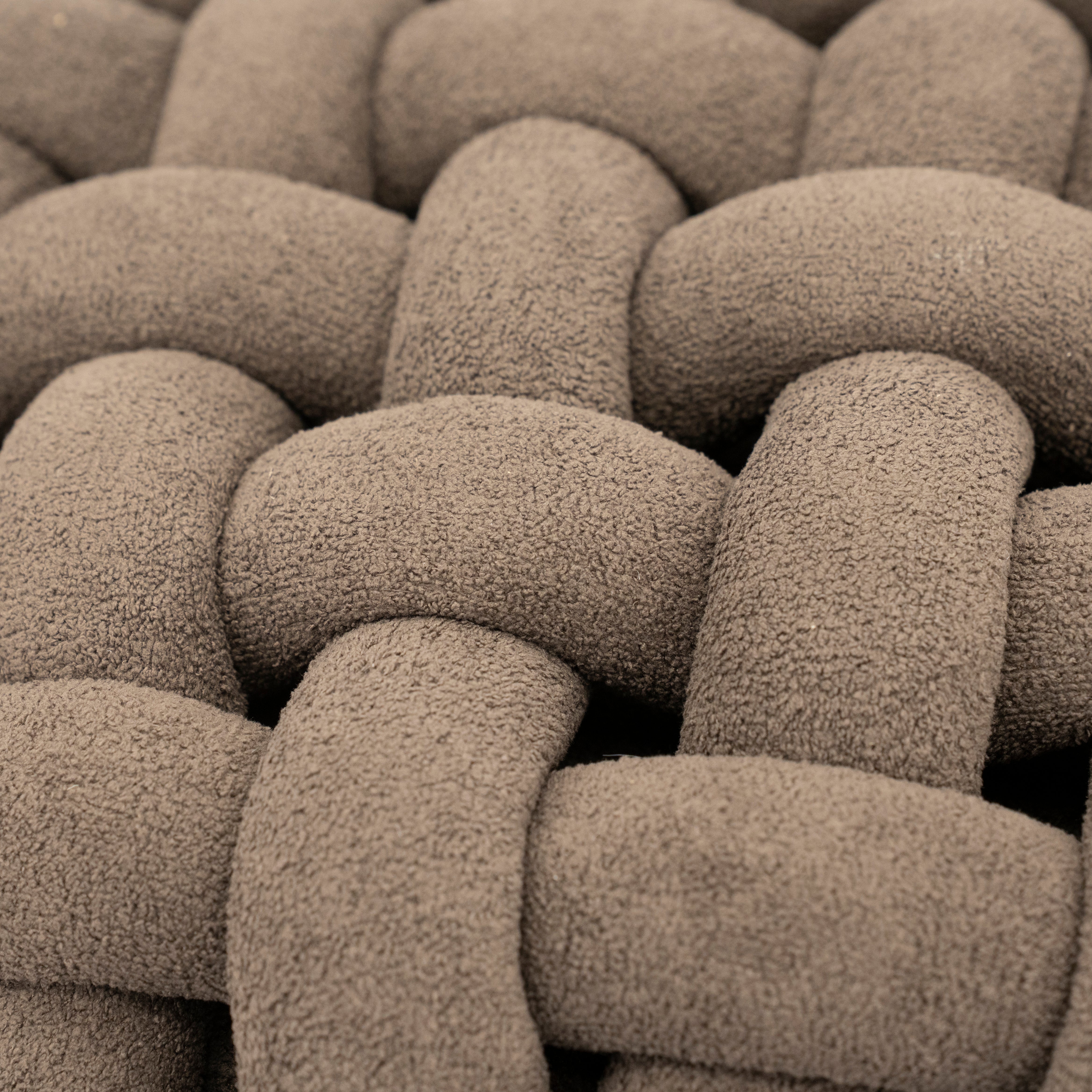 Oryginalny puf Poofie to połączenie nowoczesnego designu z miękkością i komfortem. Jego charakterystyczna, pleciona forma nadaje wnętrzu wyjątkowego stylu i sprawia, że mebel staje się efektowną ozdobą każdego pomieszczenia. Wykonany z miękkiej tkaniny o miłej w dotyku strukturze, zapewnia wygodę użytkowania i przytulny charakter przestrzeni.
