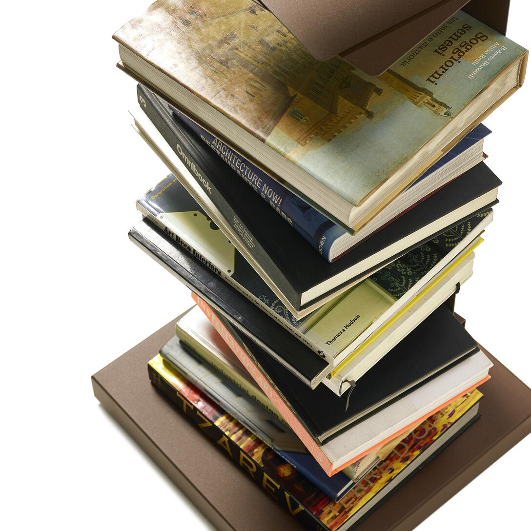 Boekenkast Original Ptolomeo, ontworpen door Bruno Rainaldi en bekroond met de prestigieuze Compasso d’Oro in 2004, is een icoon van modern design dat de manier waarop we boeken opslaan revolutioneert. Deze staande, verticale boekenkast is in wezen een eenvoudige stalen kolom waaraan dunne planken zijn bevestigd. Wanneer hij gevuld is met boeken, verdwijnt hij uit het zicht en toont hij alleen zijn inhoud, wat een uniek effect creëert – alsof de boeken in de lucht zweven.